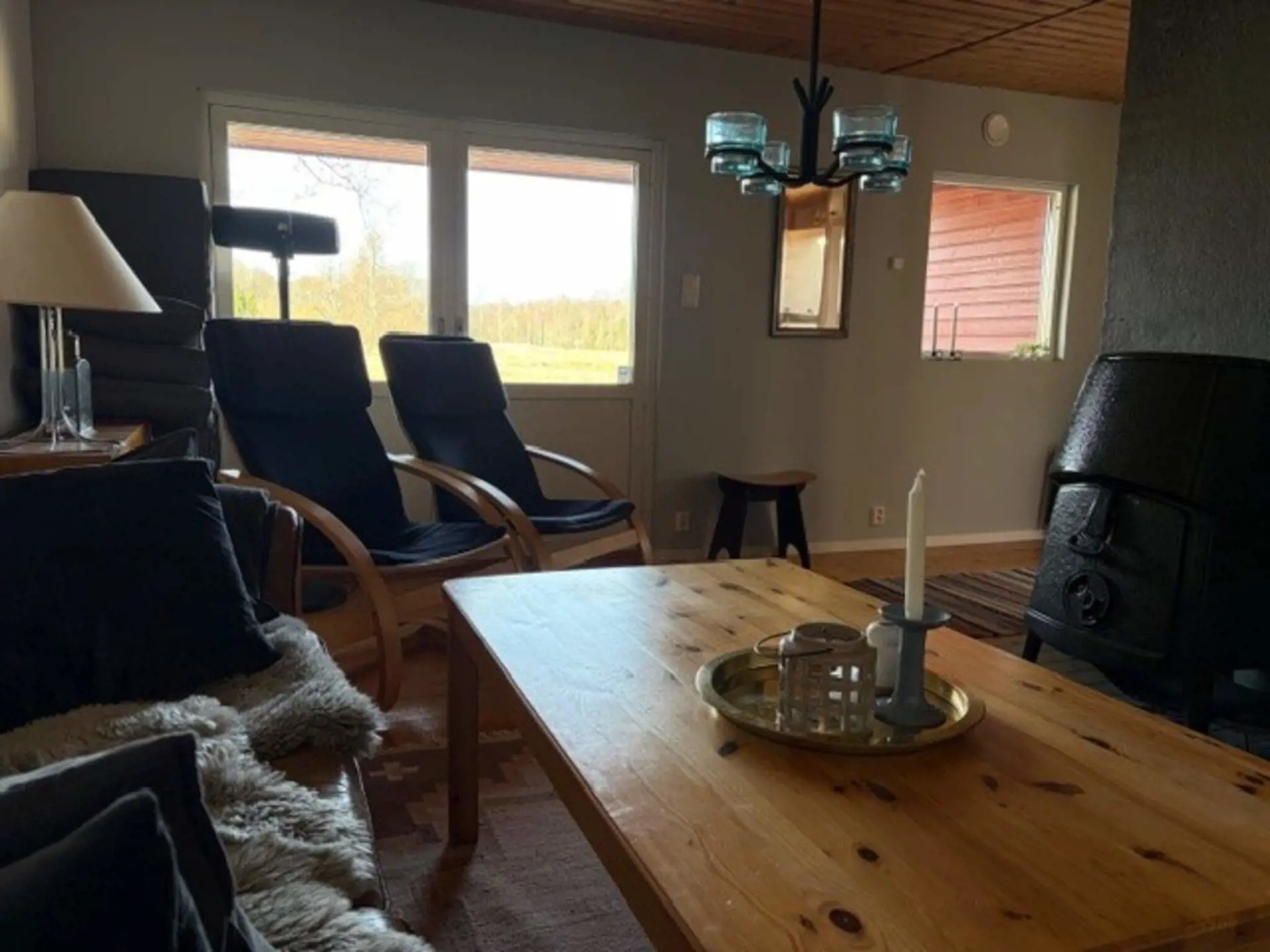 The kitchen has a stove with 3 hotplates, oven, refrigerator and microwave. Freezer is in one of the bedrooms. Cozy living room with sofa and wood-burning stove. The TV is of the older type but there is a DVD player and several DVD films in case you need it. There are two bedrooms, one with a double bed and one with bunk beds. Bathroom with toilet and shower. On the nice balcony you can sit down and maybe put something good on the grill as a nice end to a wonderful day. Or why not take a cup of coffee outside and enjoy a new day as it dawns.