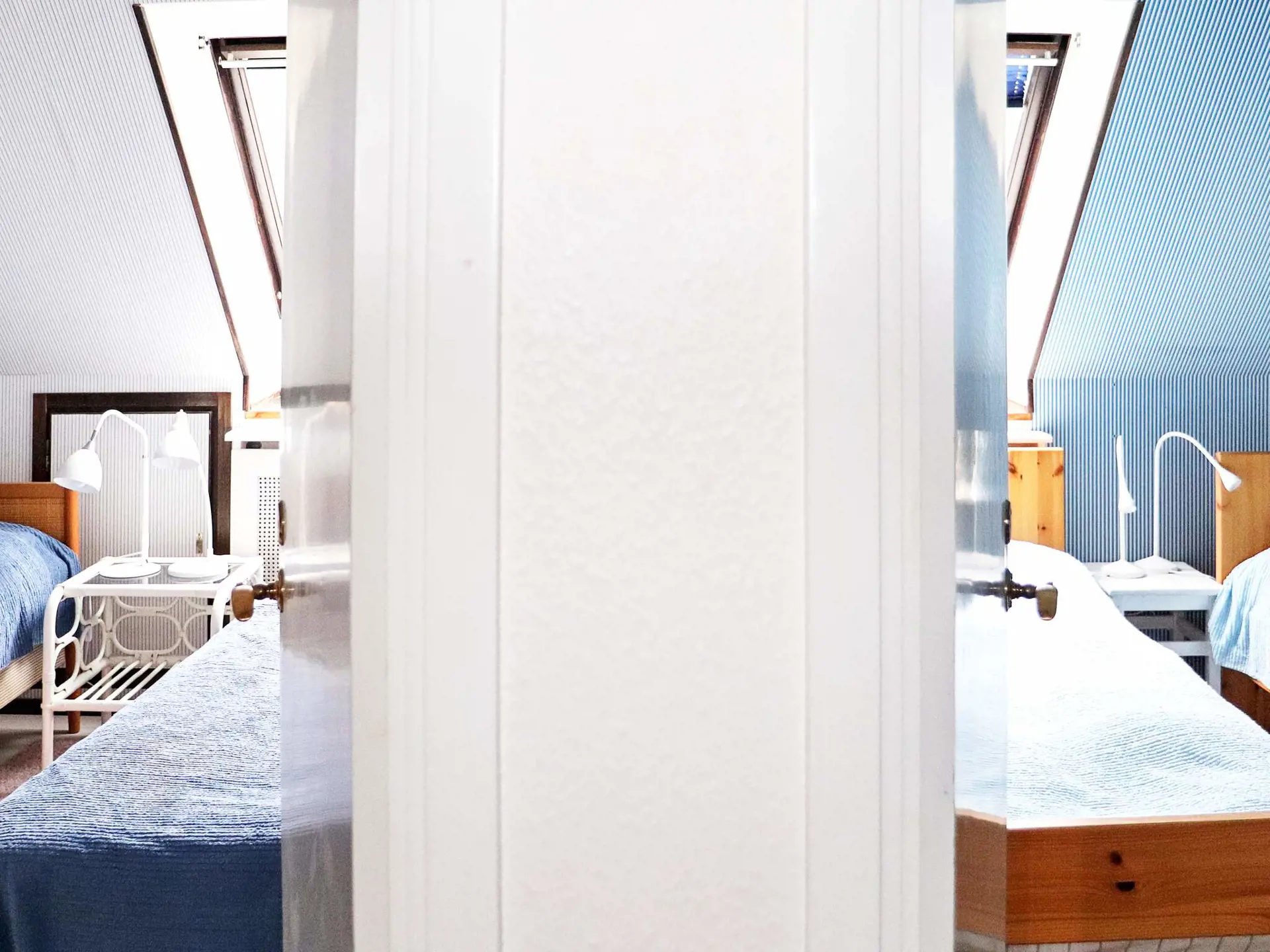 Das Reihenhaus ist ein Eckhaus. Vom Eingang aus betreten Sie die Küche mit allen notwendigen Geräten und einem Essbereich. Es gibt ein Schlafzimmer mit zwei Einzelbetten und ein Badezimmer mit Dusche. Das Wohnzimmer verfügt über bequeme Sitzgelegenheiten und einen modernen Fernseher mit Netflix. Der verglaste Wintergarten zum kleinen Garten hin ist großzügig und hell. Im Obergeschoss befinden sich ein Schlafzimmer mit Doppelbett und zwei Schlafzimmer mit je zwei Einzelbetten sowie ein Badezimmer mit Badewanne. Es gibt freies WLAN im Haus.