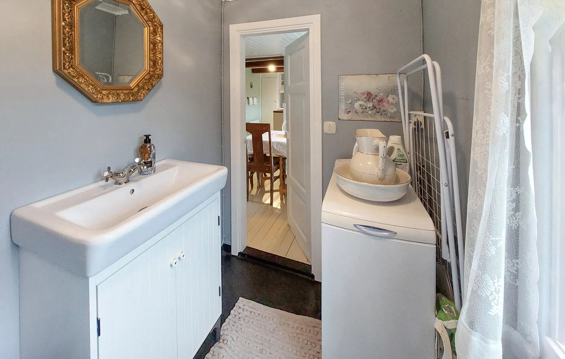 Herzlich willkommen in diesem urigen Schweden-Ferienhaus. Mitten im Wald in einer herrlichen Umgebung gelegen, begrüßt es Sie zu einem Urlaub voller schöner Erlebnisse, Entspannung und frischer Luft. In dem historisch anmutenden Ambiente mit der charmanten Einrichtung werden Sie sich schnell wohlfühlen. Gehen Sie Ihre Urlaubstage ruhig an und bereiten Sie in der praktischen Küche ein stärkendes Frühstück zu. Der schöne Esstisch lädt zu langen Familienmahlzeiten und Spieleabenden ein. Entspannen Sie sich im Wohnzimmer auf dem behaglichen Sofa vor dem Kaminofen. Lesen Sie Ihren Kindern ein gutes Buch vor und bereiten Sie sich auf einen schönen Urlaubstag in der schwedischen Natur vor.
