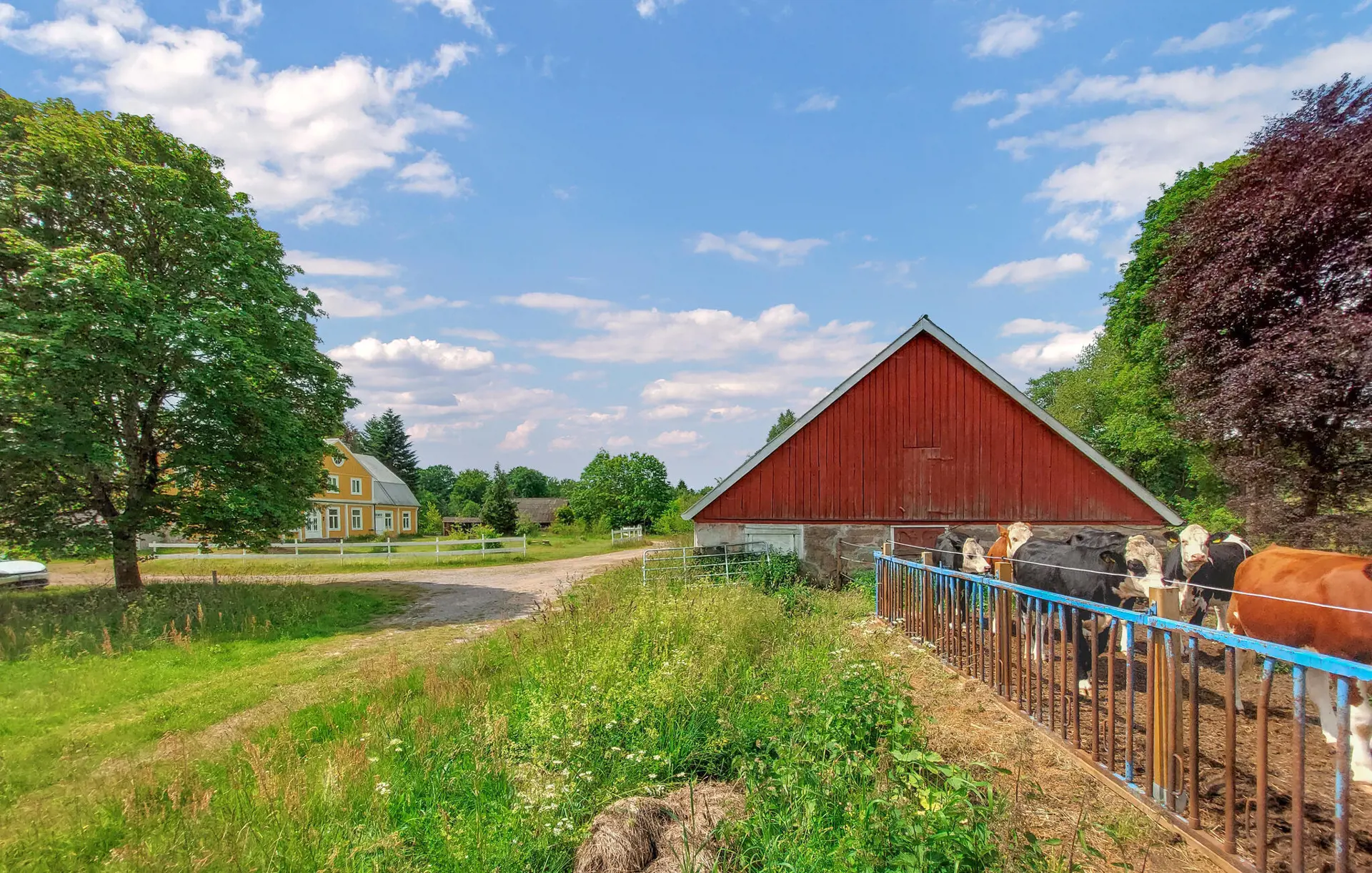 Genießen Sie vom überdachten Eingangsbereich direkt vor Ihrer Haustür einen wunderbaren Blick in die idyllische Natur. Setzen Sie sich mit einem Kaffee hierher, wenn Sie etwas windgeschützt sein möchten, oder bei sonnigem Wetter direkt in den großen, grünen Garten. Versammeln Sie Ihre Familie oder Freunde abends beim Grillen und lassen Sie den Abend unter dem Sternenhimmel ausklingen.