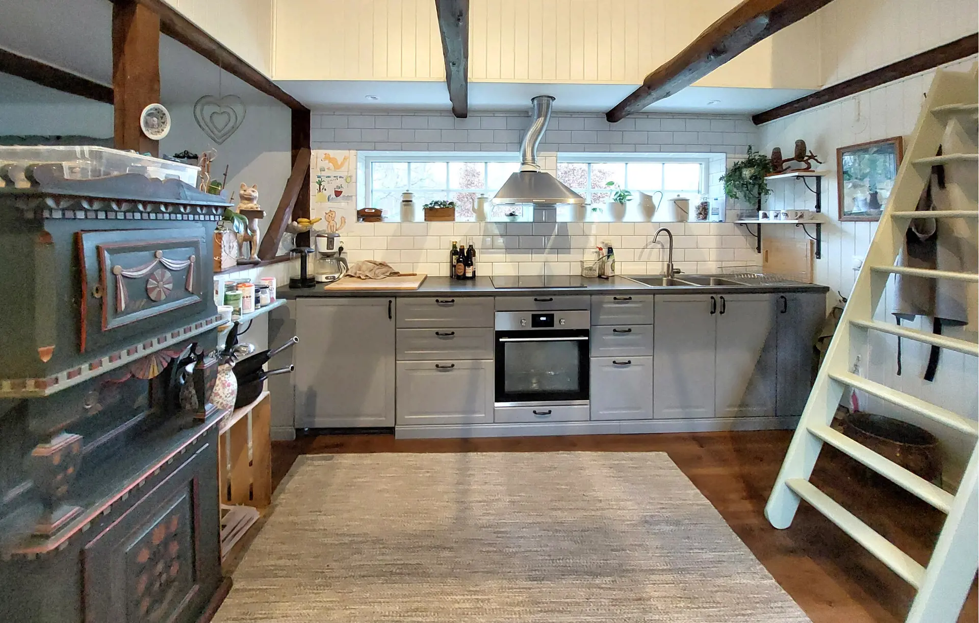 Dieses mit viel Sorgfalt renovierte Ferienhaus empfängt Sie auf einem Bauernhof mit Tieren und überzeugt mit einer gelungenen Mischung aus rustikalem Charme und modernem Komfort. Zaubern Sie leckere Gerichte, genießen Sie harmonische Mahlzeiten im offenen Wohnbereich und freuen Sie sich auf fröhliche Spieleabende oder ruhige Lesestunden, während der norwegische Kaminofen für zusätzliche Behaglichkeit sorgt.