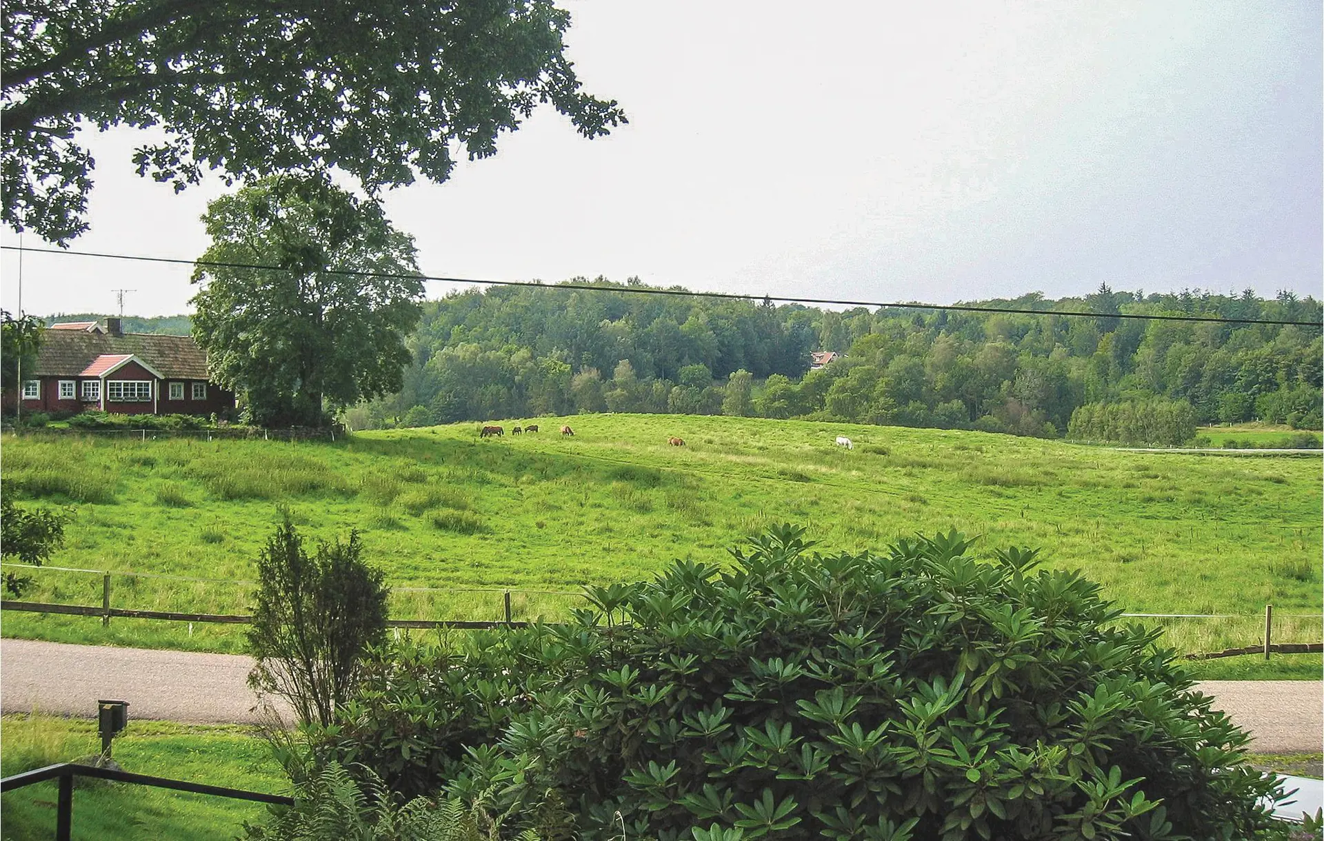 Das Ferienhaus erwartet Sie mit einer ruhigen Lage in schöner Natur. Es befindet sich in der Nähe von einem Bauernhof mit Pferden. Die Terrasse ist verglast und mit Gartenmöbeln ausgestattet. Vier Fahrräder. Das Haus auf einer Anhöhe hat ein Grundstück mit Niveauunterschieden. Eine Treppe fürht zum Haus.