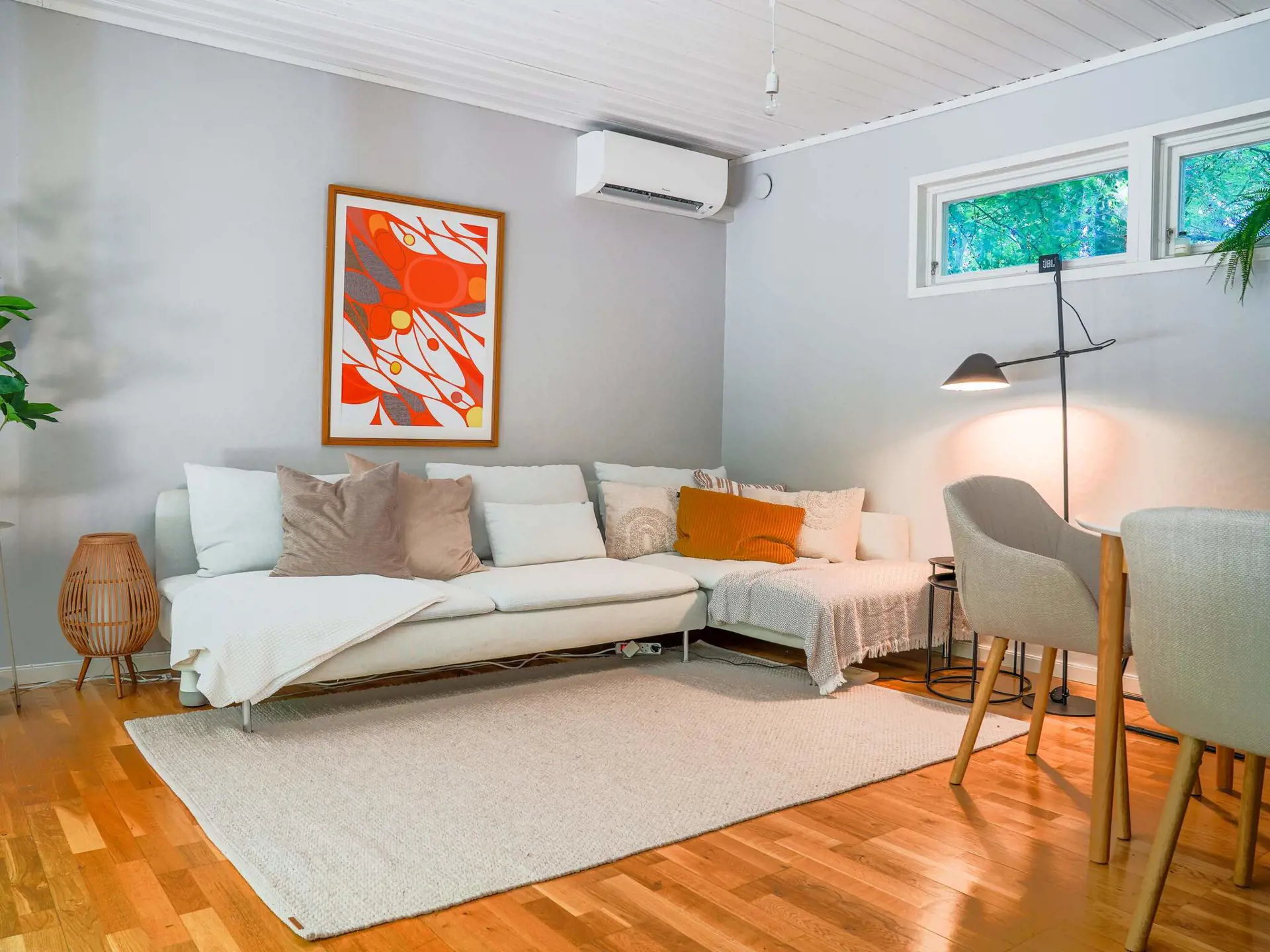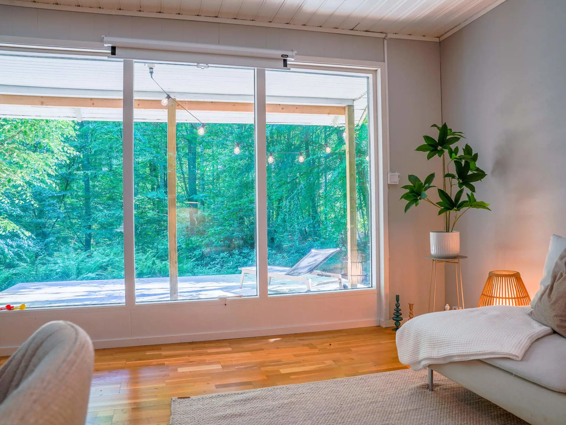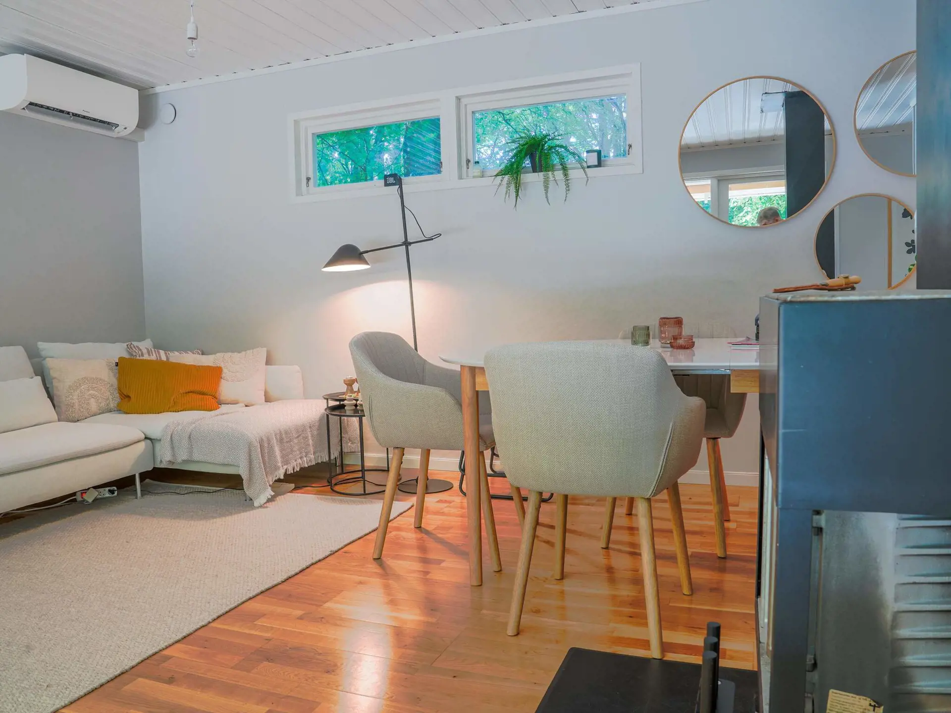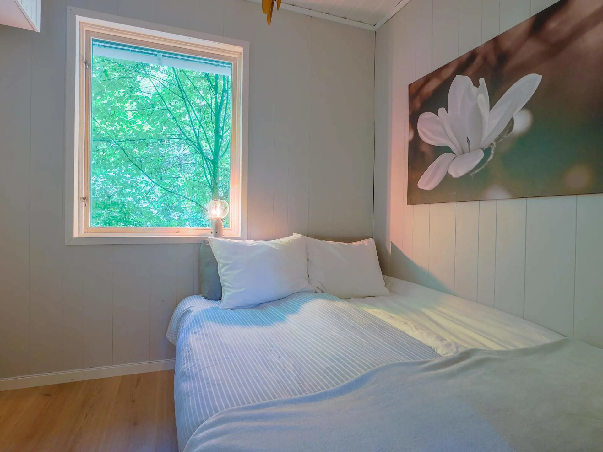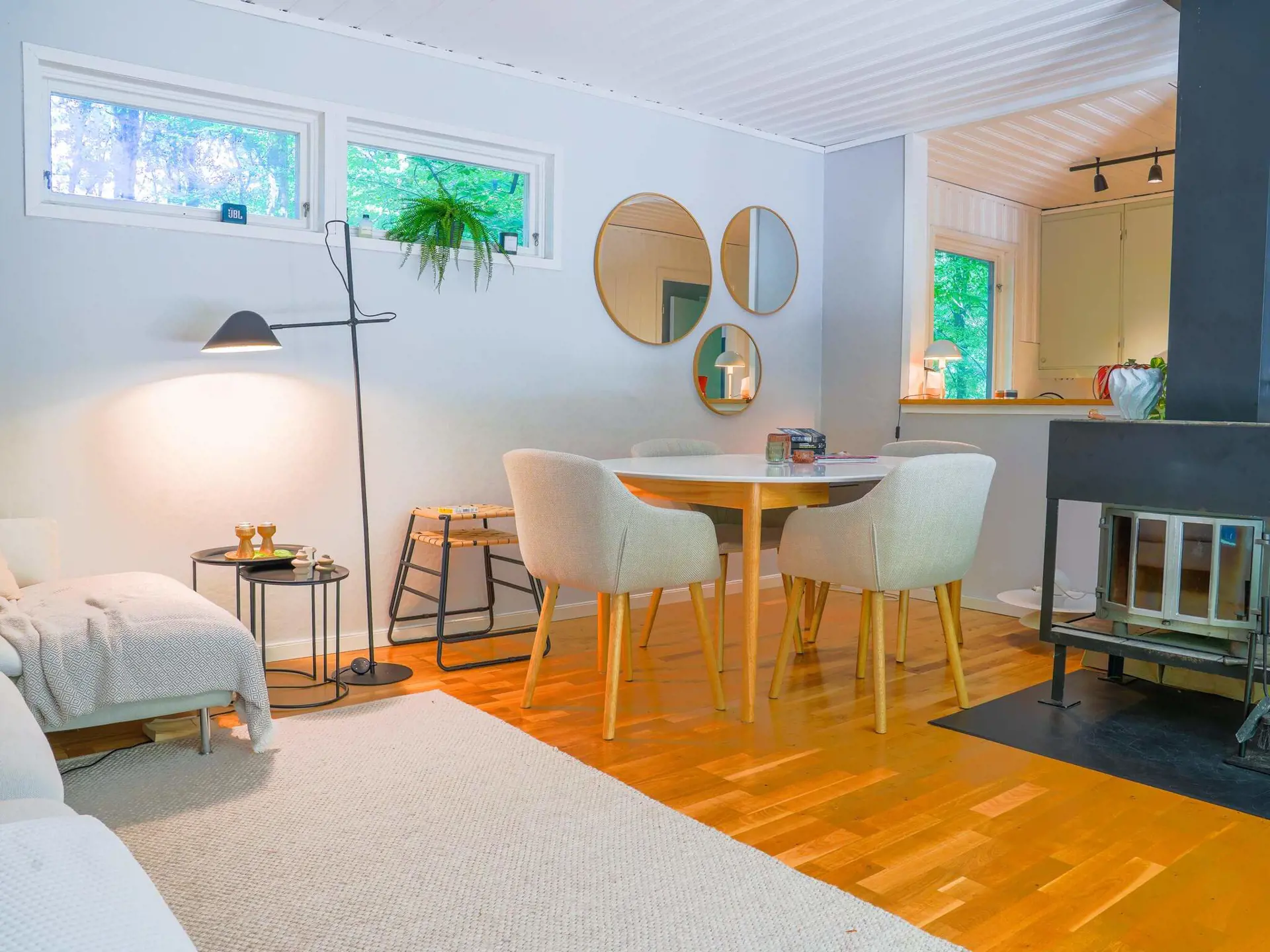 Welcome to the forest clearing in the heart of Skåne. A fresh cottage located in relaxing surroundings. Perfect choice for your holiday or if you are looking for a break from your everyday life. Here you will find peace. Get in touch with nature while having everyday luxury in the form of a tastefully decorated cottage with all amenities. The cottage is located in a secluded place in the forest and has a lovely terrace with nature directly in front. The house has two smaller bedrooms, each with a sofa bed for two people (140cm width). There is also a modern and fresh bathroom with toilet, shower and washing machine. The functional kitchen is fully equipped with fridge, freezer, stove, kettle, microwave and coffee maker. The living room has a fireplace, a corner sofa and dining area for six people, which invites cozy moments with family and friends. From the living room you can easily get out to the large terrace. On the terrace there is a seating area, sun loungers and a grill for cozy barbecue evenings and quiet moments in the private secluded location. The 6,500 m² forest plot invites you to play, explore for children and take a forest bath. The natural shade of the trees keeps the cottage cool during hot summer days and a fireplace combined with modern heating offers coziness during autumn and winter. The cottage is insulated for year-round living. There are many nice excursion tips in the area. To the north is Fulltofta's lovely nature reserve. For those interested in nature, culture and history, it is about a 10-minute drive to Christinehofs Castle and its ecopark, as well as to Andrarum's alum mill with its picturesque summer café. Concerts and events are arranged at Christinehofs Castle during the summer. Hike along the Verkeån River all the way to the sea at Haväng. Enjoy the peace and nature in Forsamölla and Hallamölla. The lovely white sandy beaches at Juleboda, Haväng or Vitemölla are a short drive away. Simrishamn, the picturesque little town in Österlen and the half-timbered town and Wallanders Ystad in the southwest, are only a short drive away. For those interested in golf, there are a number of fine golf courses in the area, the closest being Degeberga, Widtsköfde Gk. Skicka feedback