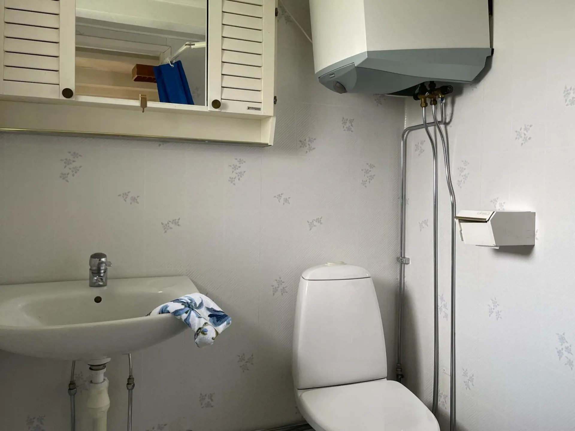 Sobald Sie sich im Haus befinden, haben Sie einen geräumigen Flur und ein Badezimmer mit allen Annehmlichkeiten. Desweiteren befindet sich Schlafzimmer Nummer 1 mit zwei Einzelbetten (90cm) darin.