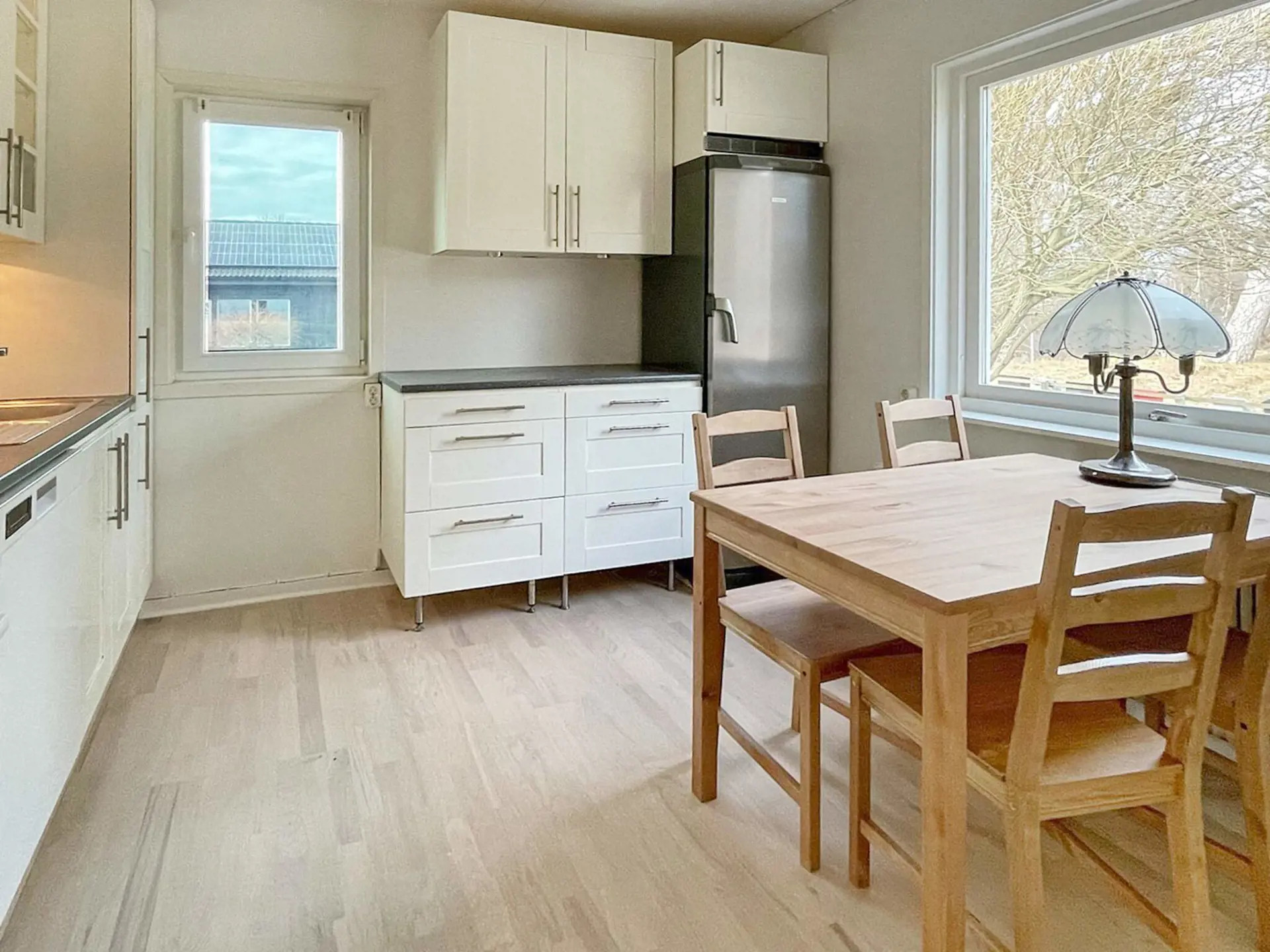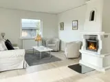 Im Inneren werden Sie von einem geräumigen Flur begrüßt, der zur Küche führt, die viel Platz zum Kochen bietet. Das an die Küche angrenzende Wohnzimmer verfügt über eine großzügige Sitzgruppe mit einem Holzofen, der den Gemütlichkeitsfaktor erhöht. Zudem Esstisch und schönes Licht im Raum.