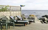 Dieses gemütliche Ferienhaus liegt in einer schönen Umgebung, nahe der Natur und dem Meer, genauer gesagt auf einer Landzunge auf Landön, bei Hanöbukten und unweit von Åhus und Kristianstad. Das Grundstück am Wasser, dem eigenen Sonnendekc direkt am Wasser und einer herrlichen Aussicht auf die Bucht, lässt Sie hier bestimmt einen wunderbaren Urlaub erleben. Das Haus mit seinen zwei Etagen ist funktionell eingerichtet, hat zwei Schlafzimmer im Obergeschoss und eine Wohnküche im Erdgeschoss. Von hier kommen Sie auch direkt auf die teilweise überdachte Holzterrasse und auf einen weiteren, sichtgeschützten Sitzgereich im Garten, wo Sie auch Abends die Sonne erleben können. Das Haus liegt auf dem Grundstück des Eigentümers, der nur gelegentlich hier wohnt. Im ganzen Gebiet gibt es viel zu sehen. Die Küste gehört zu den schönsten Abschnitten Schonens. Kjugekull ist eines von mehreren Naturreservaten it Wanderwegen und Ausblicken auf den See Ivösjön. Der Weg Humleslingan, auf dem Sie die Sehenswürdigkeiten Bäckaskogs Schloss, Ivö, Sibbarpsdalen und Gudahangen sehen, fürht um den See. Erleben Sie auch die Höhlen Tykarpsgrottan mit Ihren Kindern. Gut einkaufen und essen können Sie in Kristianstad und Åhus. Åhus ist übrigens auch für das Aalfischen und den gut erhaltenen alten Stadtkern bekannt, der seine Wurzeln im Mittelalter hat. Es gibt auch mehrere Golfplätze in der Umgebung.