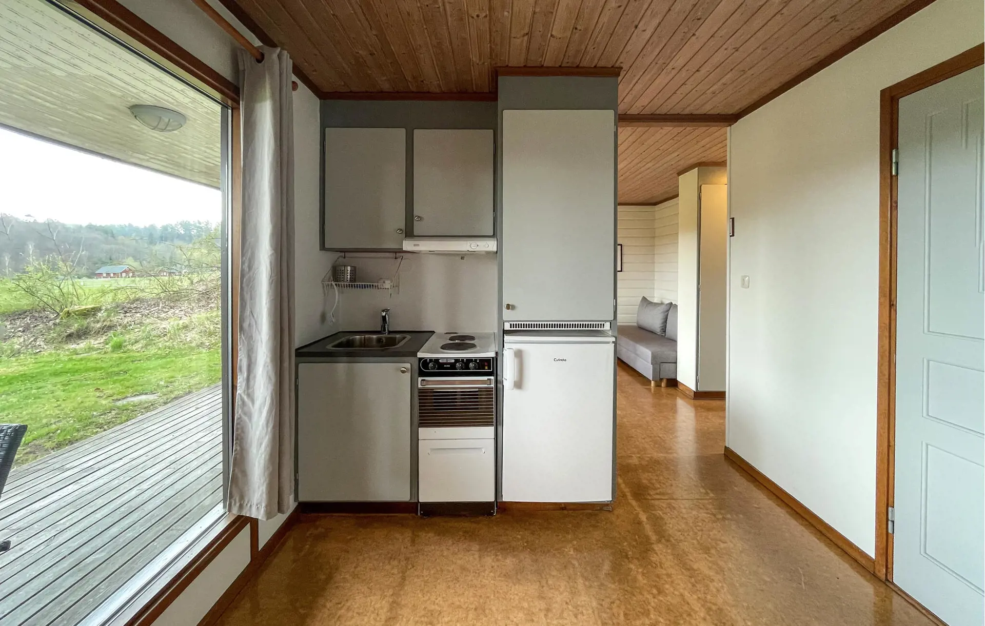 Verbringen Sie Ihren Urlaub in Degeberga Stugby, dem Tor zur beliebten Region Österlen. Die ruhige Lage am Waldrand bietet beste Voraussetzungen für entspannte Tage mit der Familie. Erleben Sie die typische schwedische Hüttenatmosphäre und entdecken Sie von hier aus die reizvolle Umgebung rund um Kristianstad, Åhus, Malmö und Lund. Das Haus ist funktional eingerichtet und überzeugt mit seinem einfachen, hellen Wohnbereich. Machen Sie es sich auf den Sesseln oder dem Sofa gemütlich und wärmen Sie sich an kühleren Abenden am Kaminofen. Bereiten Sie einfache Mahlzeiten in der kompakten Küchenzeile zu und genießen Sie diese gemeinsam am Esstisch mit Blick ins Grüne. Große Fenster lassen viel Licht herein und sorgen für eine freundliche Stimmung im Innenraum.