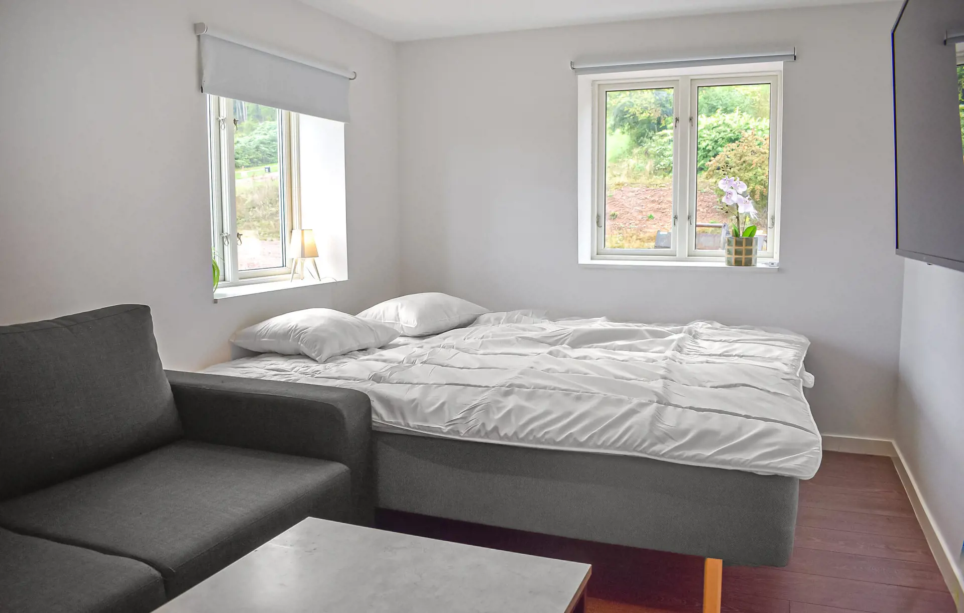 Dieses landschaftlich schön gelegene Haus ist wie geschaffen für eine entspannte Auszeit vom Alltag. Ein bequemes Sofa und eine modern eingerichtete Küche schaffen eine Atmosphäre, in der Sie schnell in den Urlaubsmodus schalten können. Egal ob Sie einen spannenden Podcast hören, gemütlich Kaffee trinken oder gemeinsam kochen, hier bestimmen Sie das Tempo Ihres Tages.