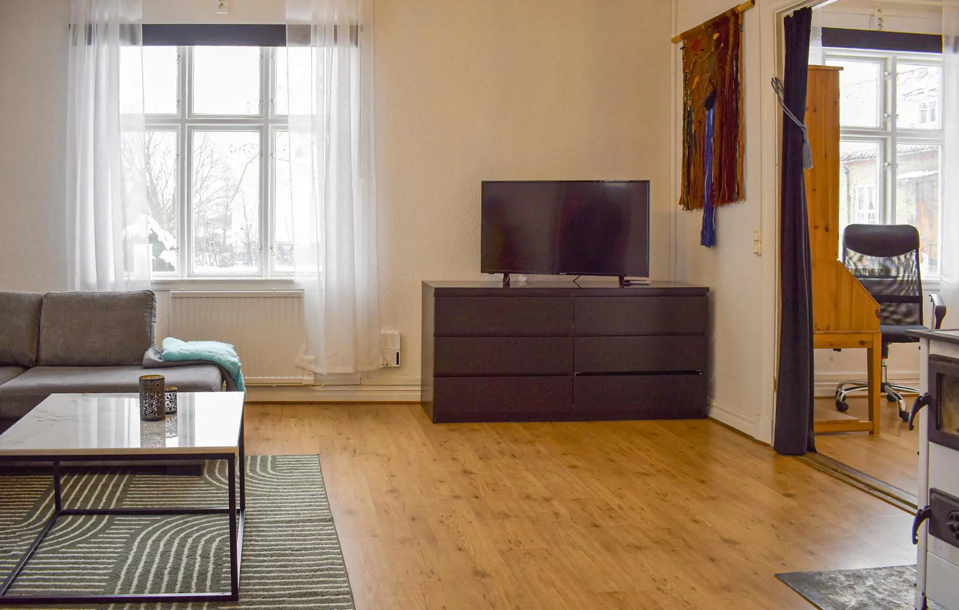 Diese helle und geschmackvoll eingerichtete Ferienwohnung begrüßt Sie in einem liebevoll restaurierten Backsteinhaus und bietet Ihnen eine komfortable Basis für abwechslungsreiche Tage mit Ihren Liebsten. Starten Sie mit einem entspannten Frühstück am einladenden Esstisch in den Tag, planen Sie in aller Ruhe Ihre Unternehmungen und entfachen Sie nach einem langen Ausflug den norwegischen Kaminofen. Machen Sie es sich auf der großzügigen Sofalandschaft gemütlich und genießen Sie die behagliche Atmosphäre bei einem harmonischen Spieleabend.
