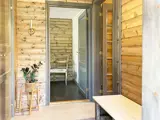 Vorne im Eingangsbereich hat man Zutritt zu einem Schlafzimmer mit einem Doppelbett und zum Gäste-WC. Durch schöne Glastüren geht es weiter in den Hauptteil des Hauses. Dort haben Sie links ein weiteres Schlafzimmer mit einem Doppelbett und rechts ein weiteres Schlafzimmer mit einem Schlafsofa für eine Person. Nebenan befindet sich ein Badezimmer mit Dusche.