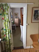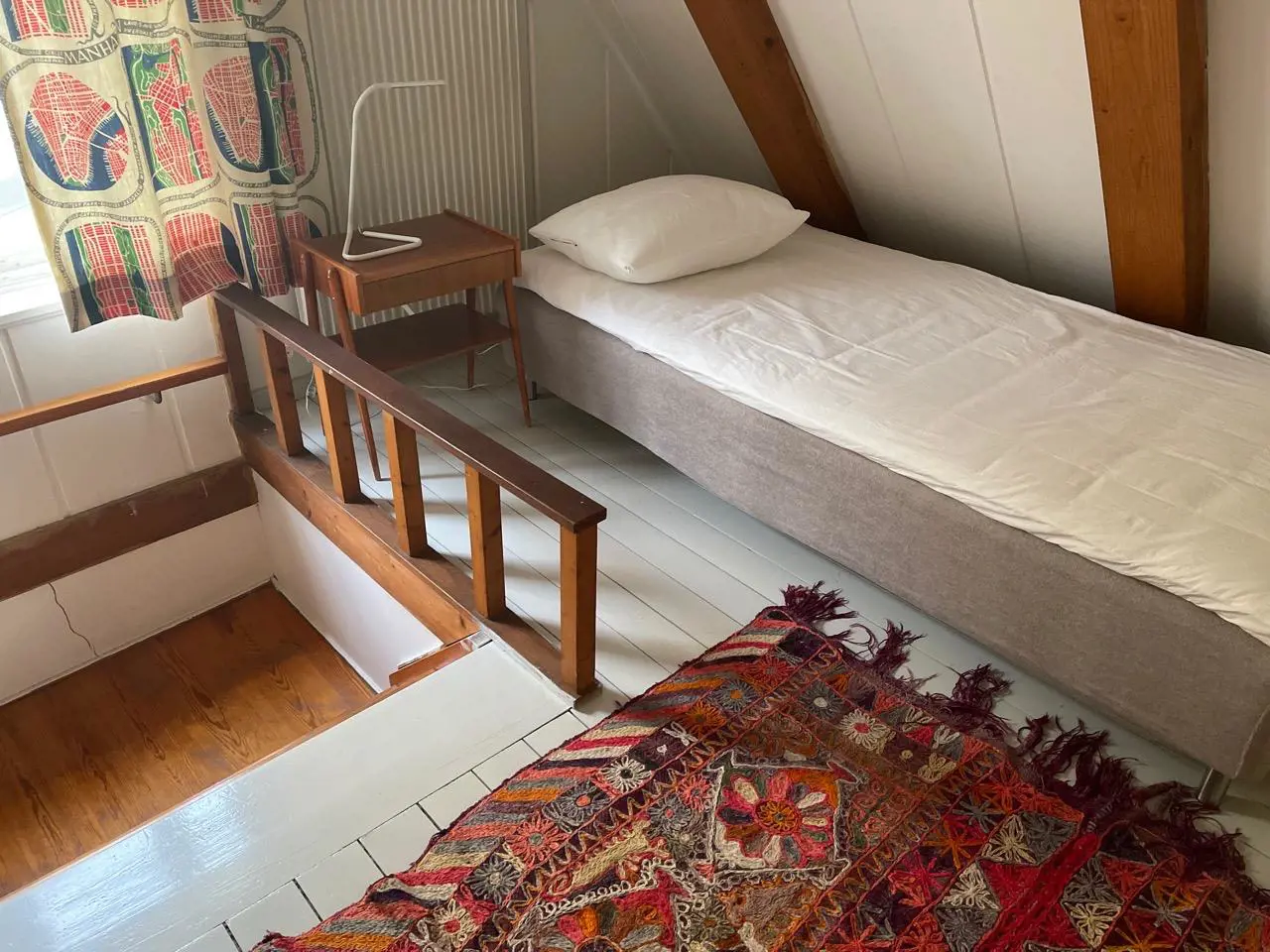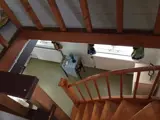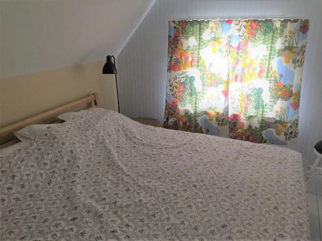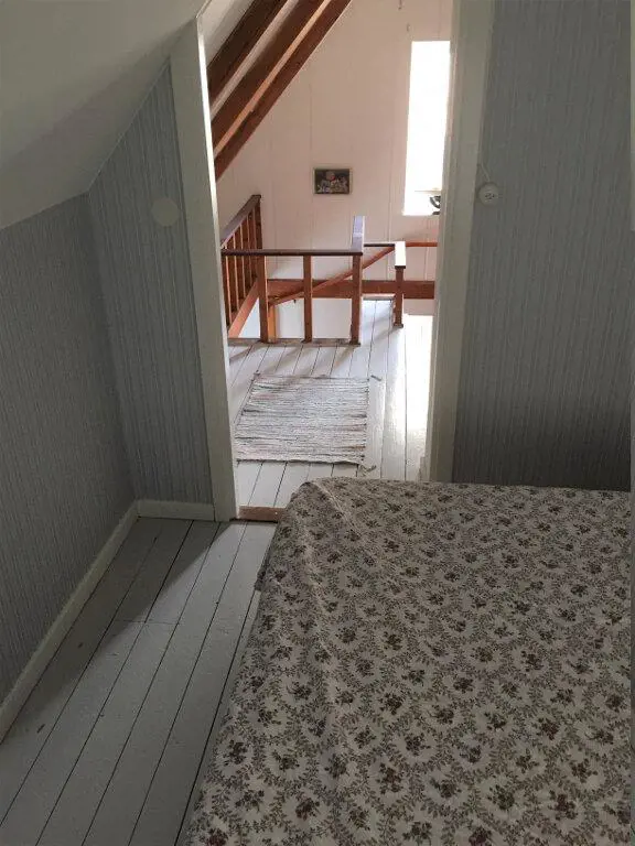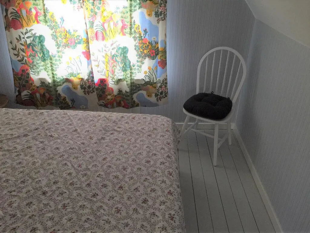 Das Ferienhaus ist modern eingerichtet, aber der alte Charme ist erhalten geblieben. In der ersten Etage befinden sich alle 3 Betten. Es gibt ein Schlafzimmer mit einem Doppelbett in full-size und davon durch einen Vorhang abgesondert gibt es ein Einzelbett auf dem gleichen Etagenabsatz.