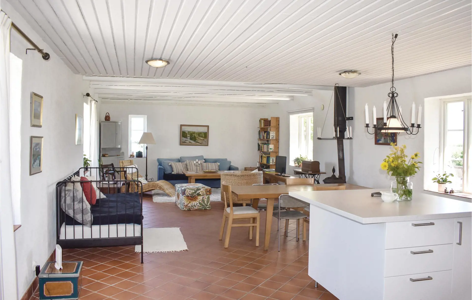 Der ehemalige Bauernhof erwartet Sie in idyllischer Lage in Österlen. Machen Sie es sich in den hellen, wohnlich gestalteten Räumen mit Ihren Lieben gemütlich. Der großzügige Wohnküchenbereich lädt zu gemeinsamen Aktivitäten ein. Kochen Sie zusammen und verbringen Sie schöne Abende auf dem Sofa, das leise Knistern des Kaminofens sorgt für eine behagliche Stimmung.