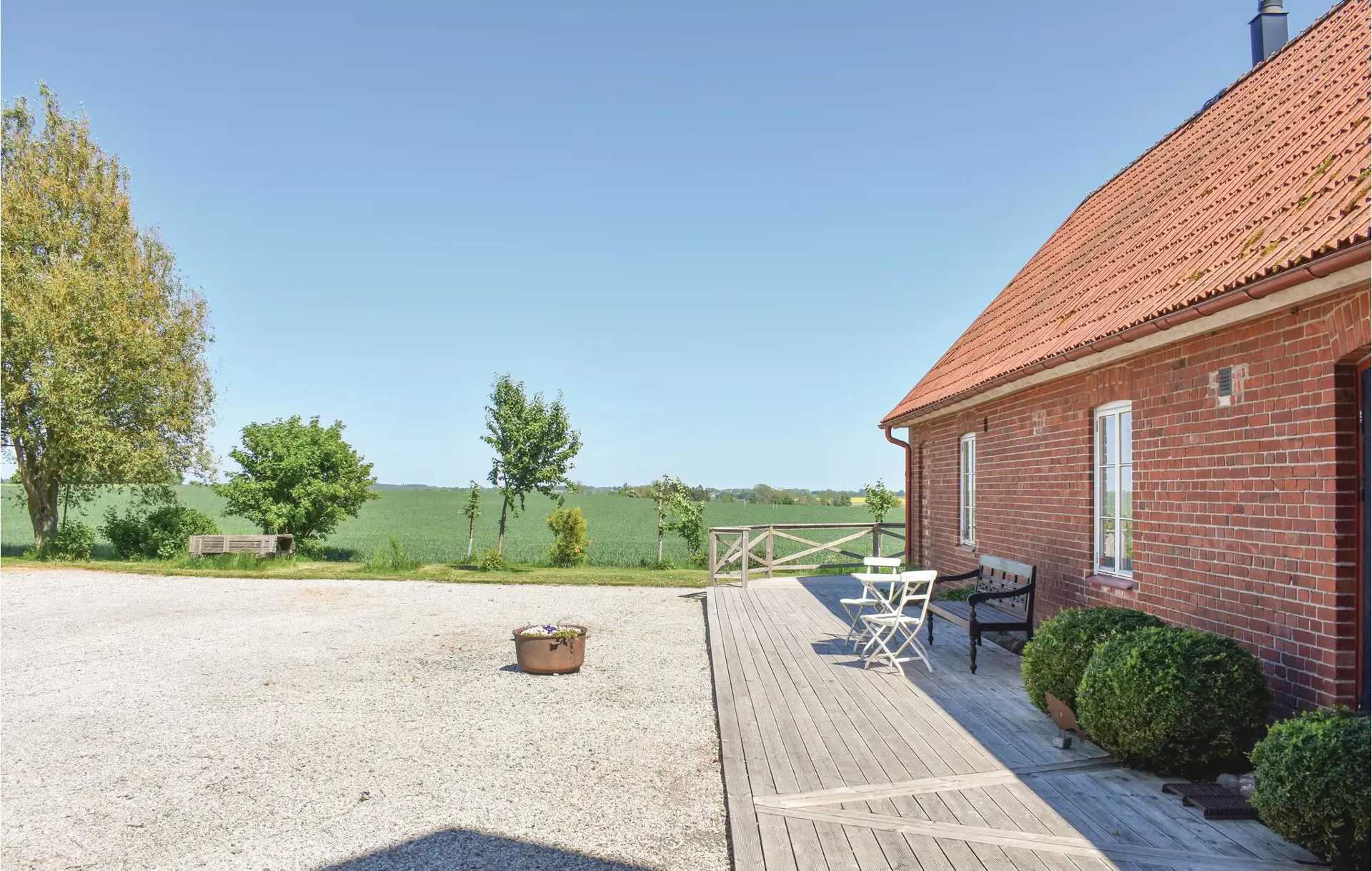 Lassen Sie sich auf der Terrasse, die drei Seiten des Hauses umgibt, nieder und sehen Sie Ihren Kindern beim Spielen auf dem weitläufigen Grundstück zu. Von hier aus können Sie sanfte Felder, Bauernhöfe, Kirchtürme und die bekannte Silhouette von Glimmingehus sehen. Versammeln Sie die ganze Familie zu einem leckeren Essen vom Grill.