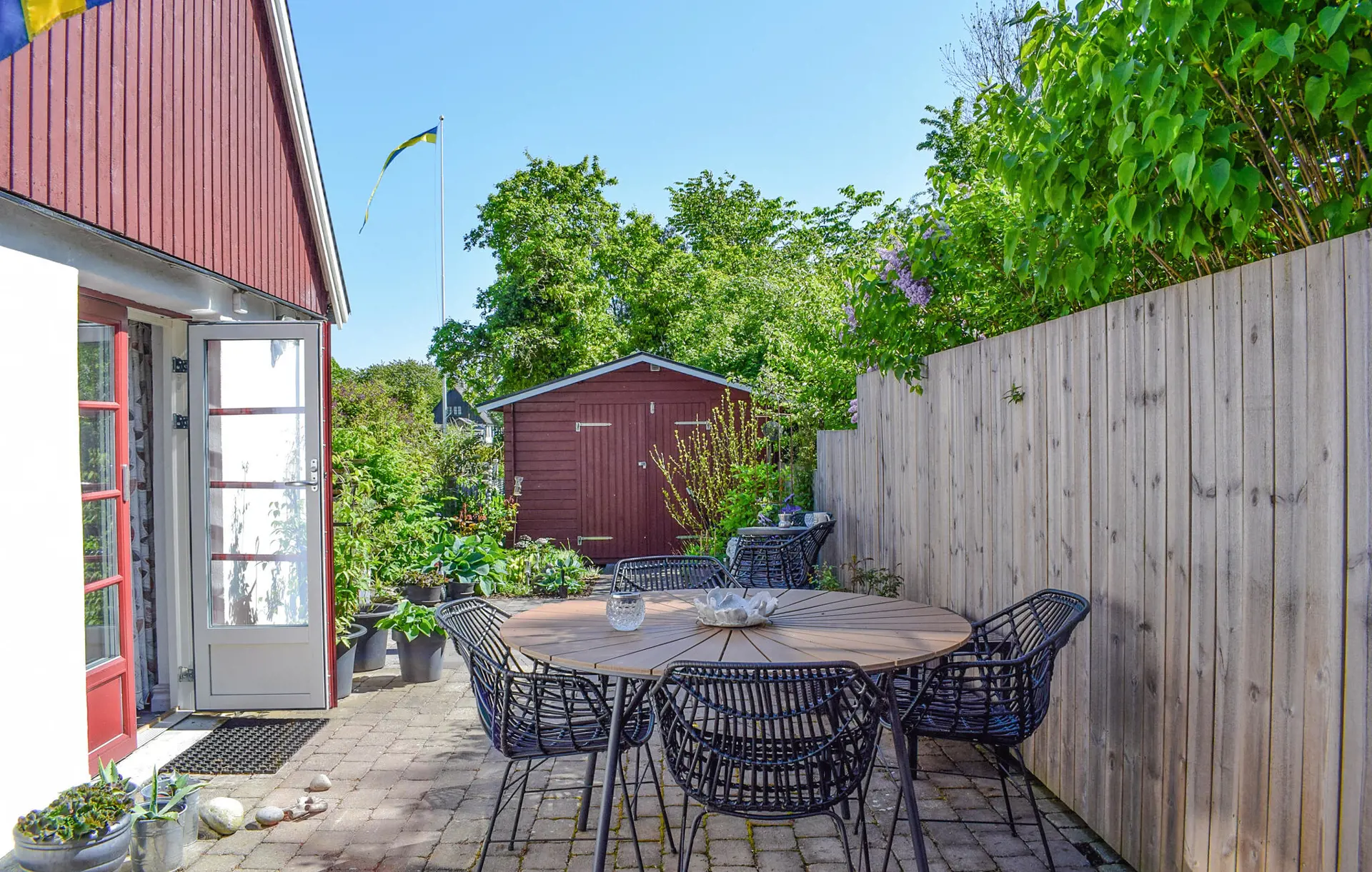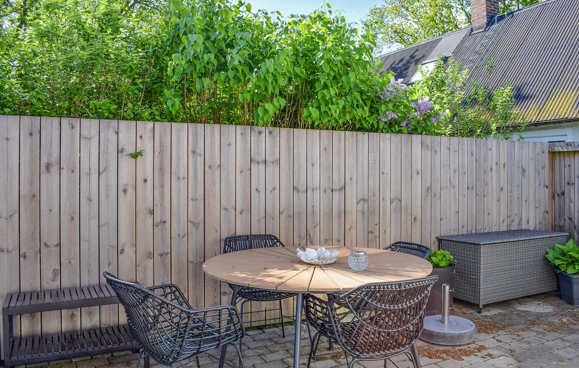 Auf dem eingezäunten Grundstück können Ihre Kinder unbesorgt spielen. Genießen Sie an sonnigen Tagen ein ausgiebiges Frühstück auf der Terrasse, vertiefen Sie sich im Schatten in Ihre Urlaubslektüre und lassen Sie den Tag am Grill ausklingen.