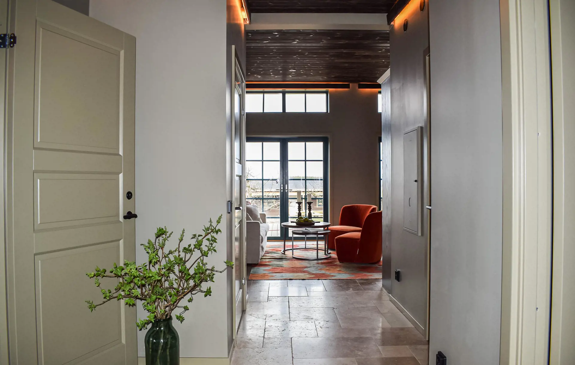 Dieses von Apfelplantagen umgebene Haus ist der ideale Rückzugsort für eine wohltuende Auszeit in der Natur. Der elegant und mit liebevollen Details eingerichtete Wohnraum lädt zu entspannten Stunden mit Familie oder Freunden ein. Machen Sie es sich auf dem Sofa gemütlich, plaudern Sie bei einem duftenden Kaffee oder vertiefen Sie sich in Ihre Urlaubslektüre.