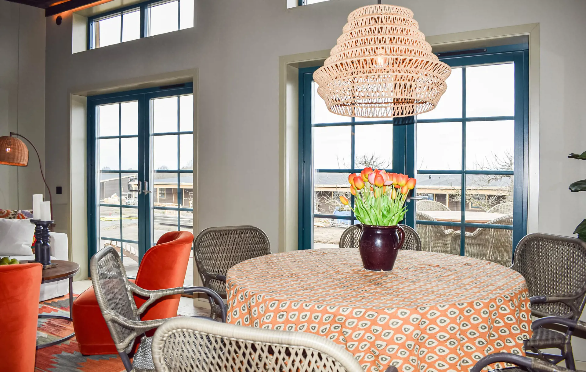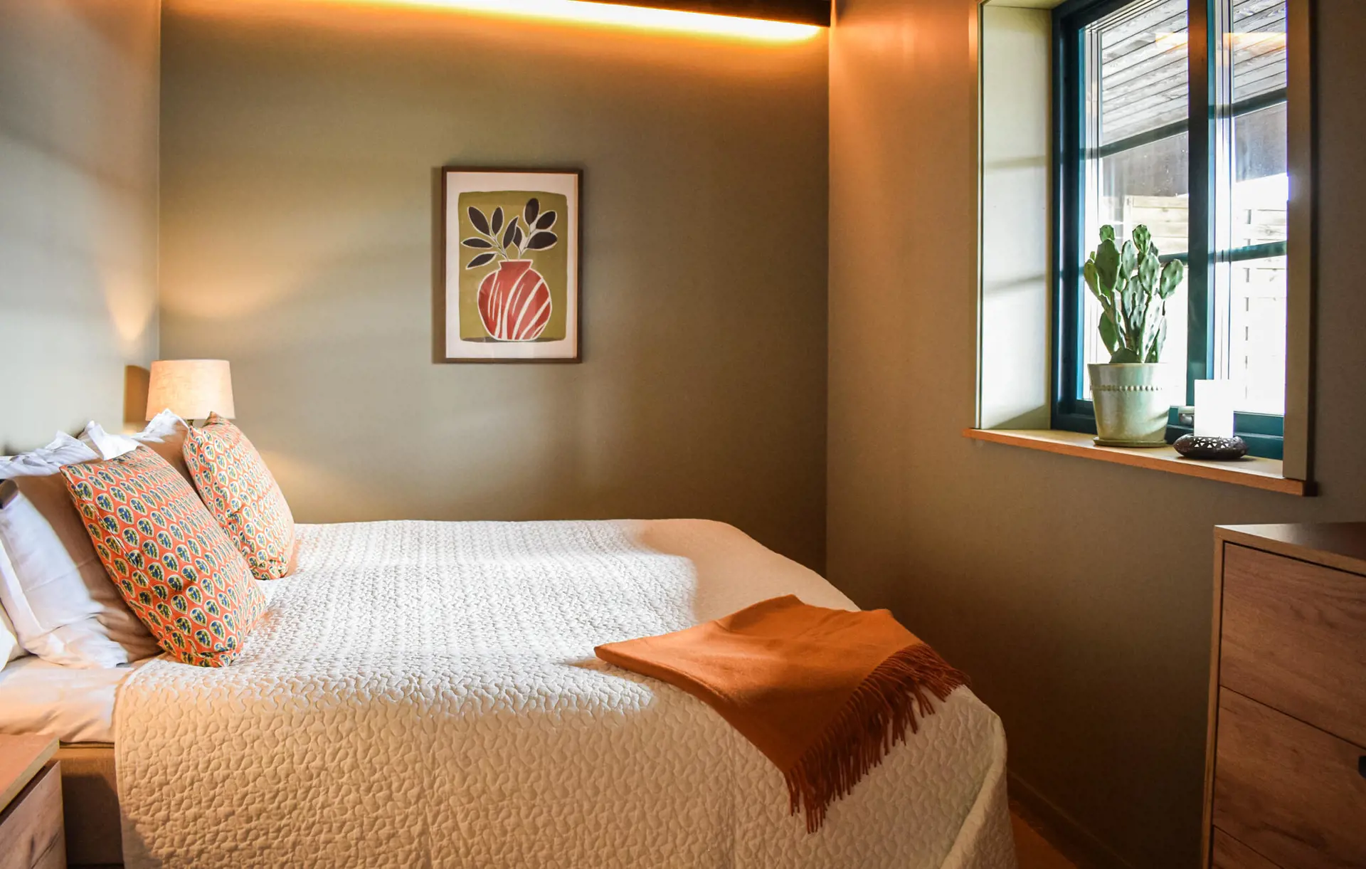 Dieses von Apfelplantagen umgebene Haus ist der ideale Rückzugsort für eine wohltuende Auszeit in der Natur. Der elegant und mit liebevollen Details eingerichtete Wohnraum lädt zu entspannten Stunden mit Familie oder Freunden ein. Machen Sie es sich auf dem Sofa gemütlich, plaudern Sie bei einem duftenden Kaffee oder vertiefen Sie sich in Ihre Urlaubslektüre.