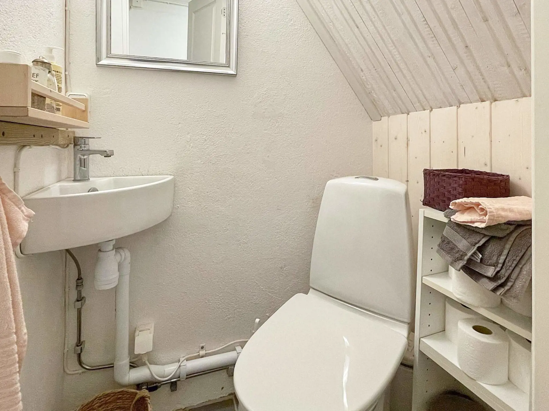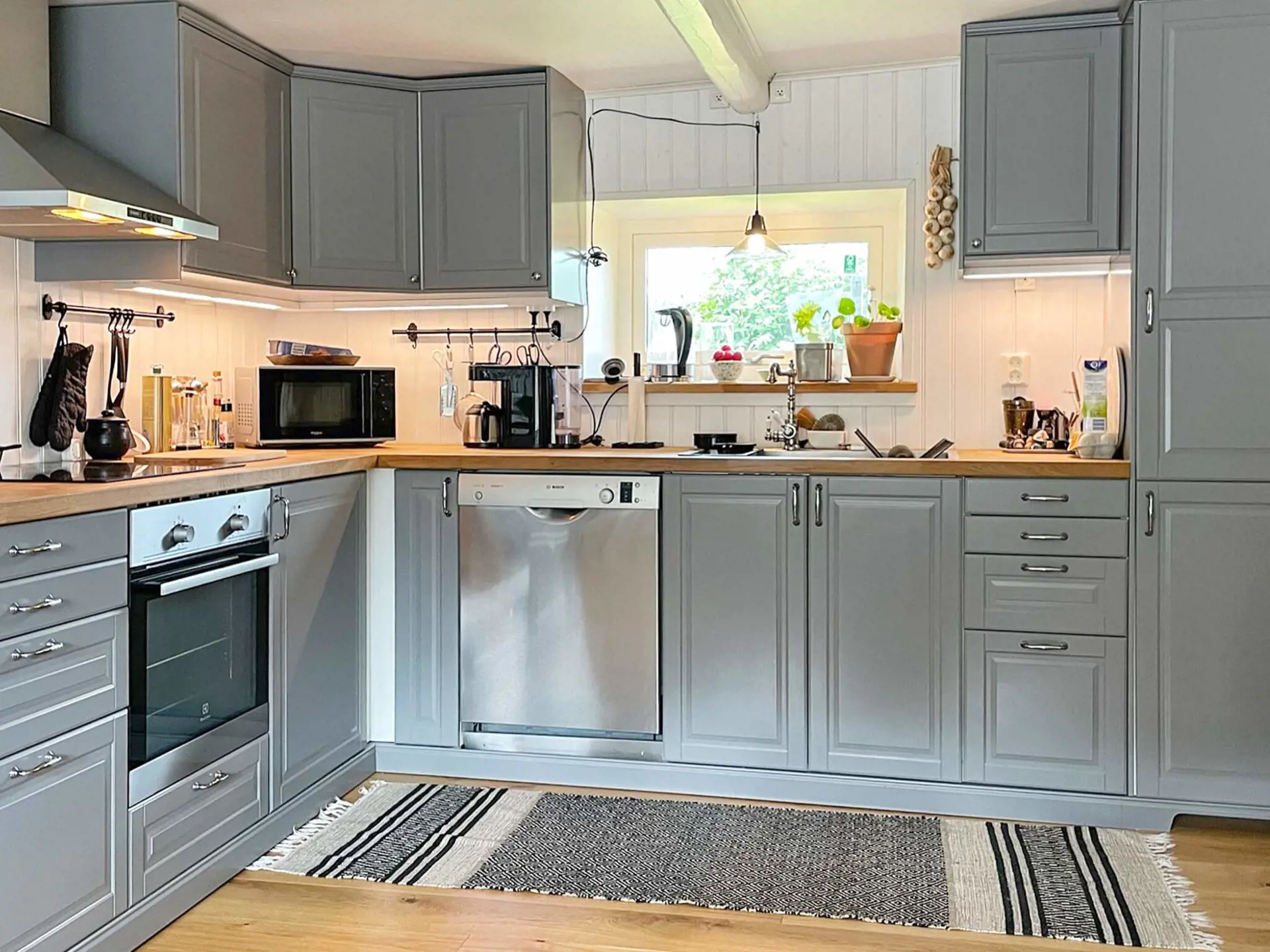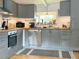 Im Parterre gibt es ein geräumiges Wohnzimmer mit Sofa, Sessel und Fernseher. Hier können Sie nach einem Tag im Freien entspannen. Nebenan findet man den einladenden Küchen-/Essbereich mit Platz für gemeinsame Mahlzeiten. Das Badezimmer des Hauses ist groß und modern modernisiert mit u.a. angenehmer Fußbodenheizung. Der Zugang zum Bad erfolgt über ein großes Schlafzimmer mit einem Doppelbett (160 cm). Außerdem Waschmaschine und kleines WC neben der Treppe im Parterre.