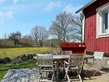 Inmitten der reizvollen Landschaft der Region Skåne entdeckt man dieses traditionelle Ferienhaus in grüner Umgebung, das innen hell und freundlich eingerichtet ist. Es steht auf einem gemeinschaftlichen Naturgrundstück.