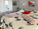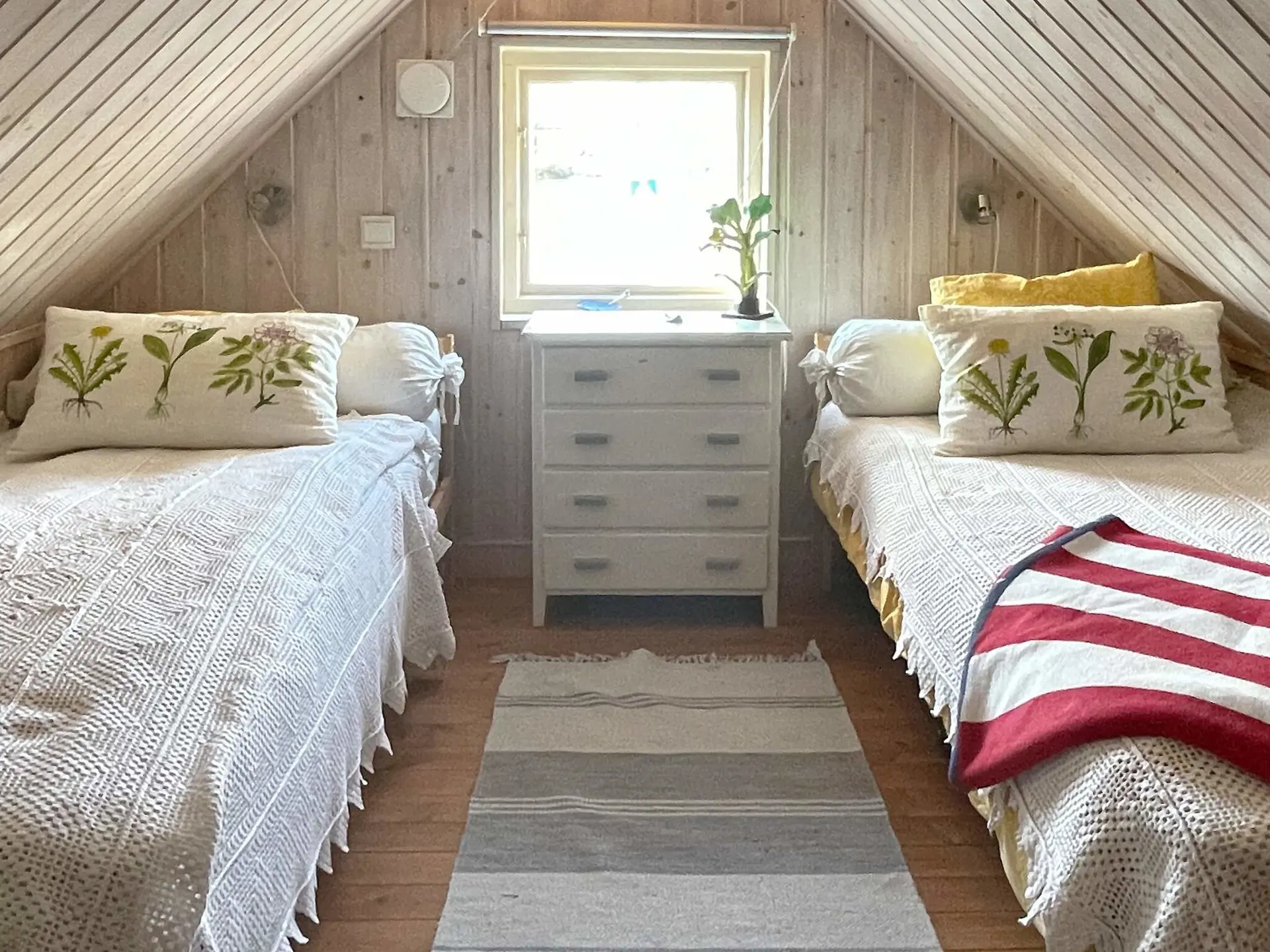 When night falls, there are two options for a good night's sleep. Either in the cozy bedroom on the ground floor with a comfortable double bed, or you can choose to climb up to the spacious sleeping loft, where two single beds await to welcome you. For the younger guests, the sleeping loft invites adventure and play.