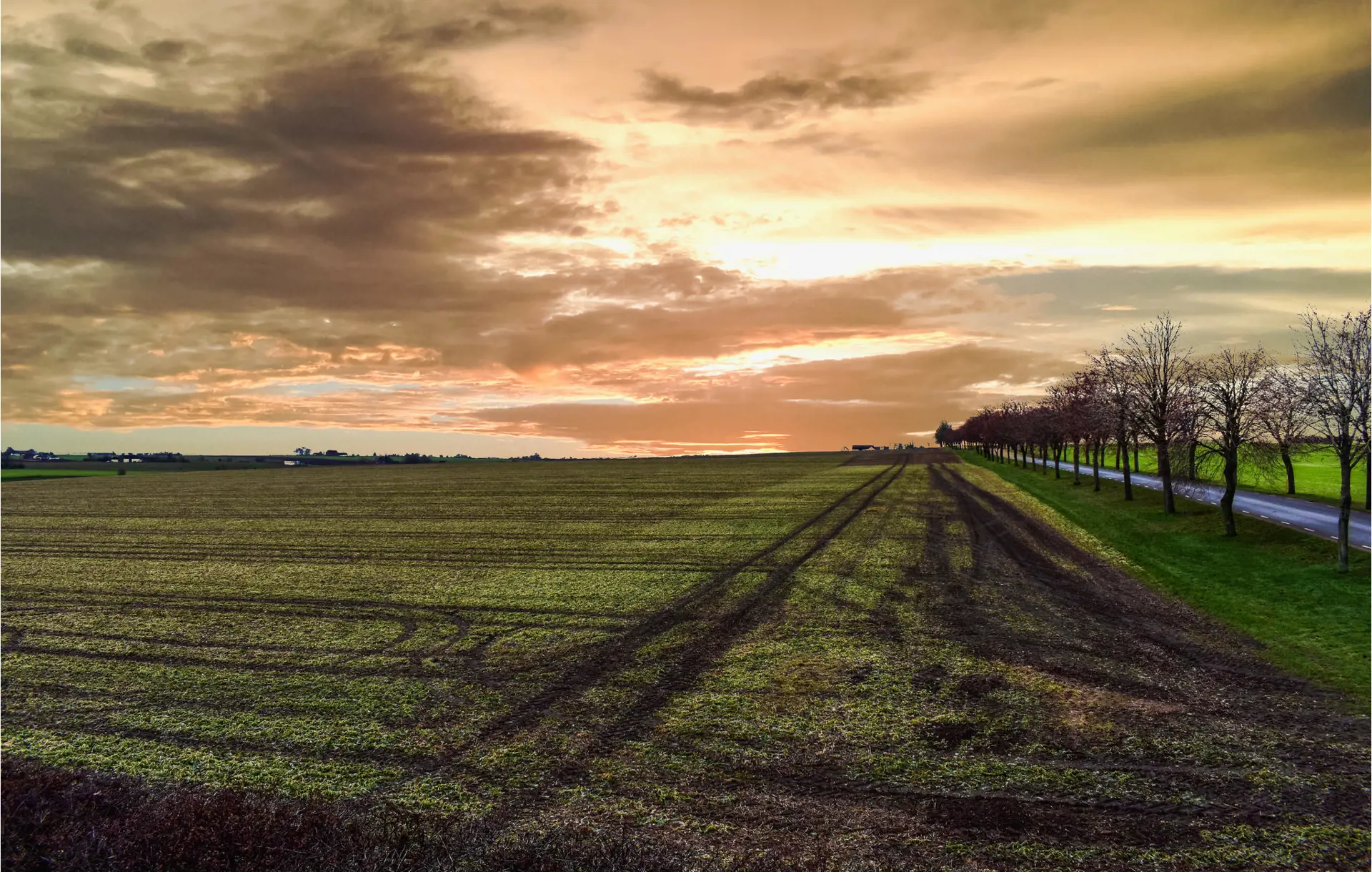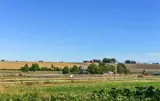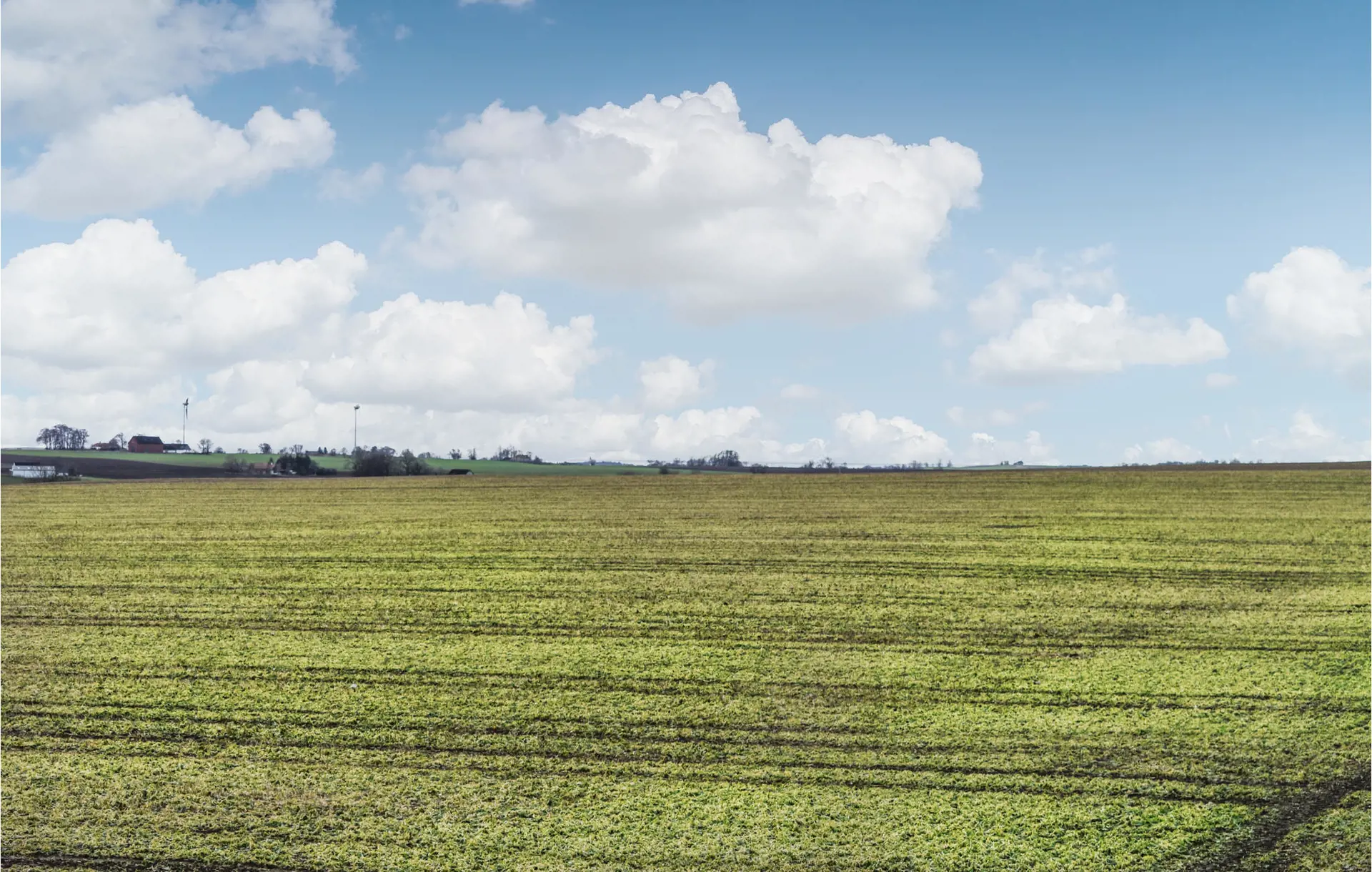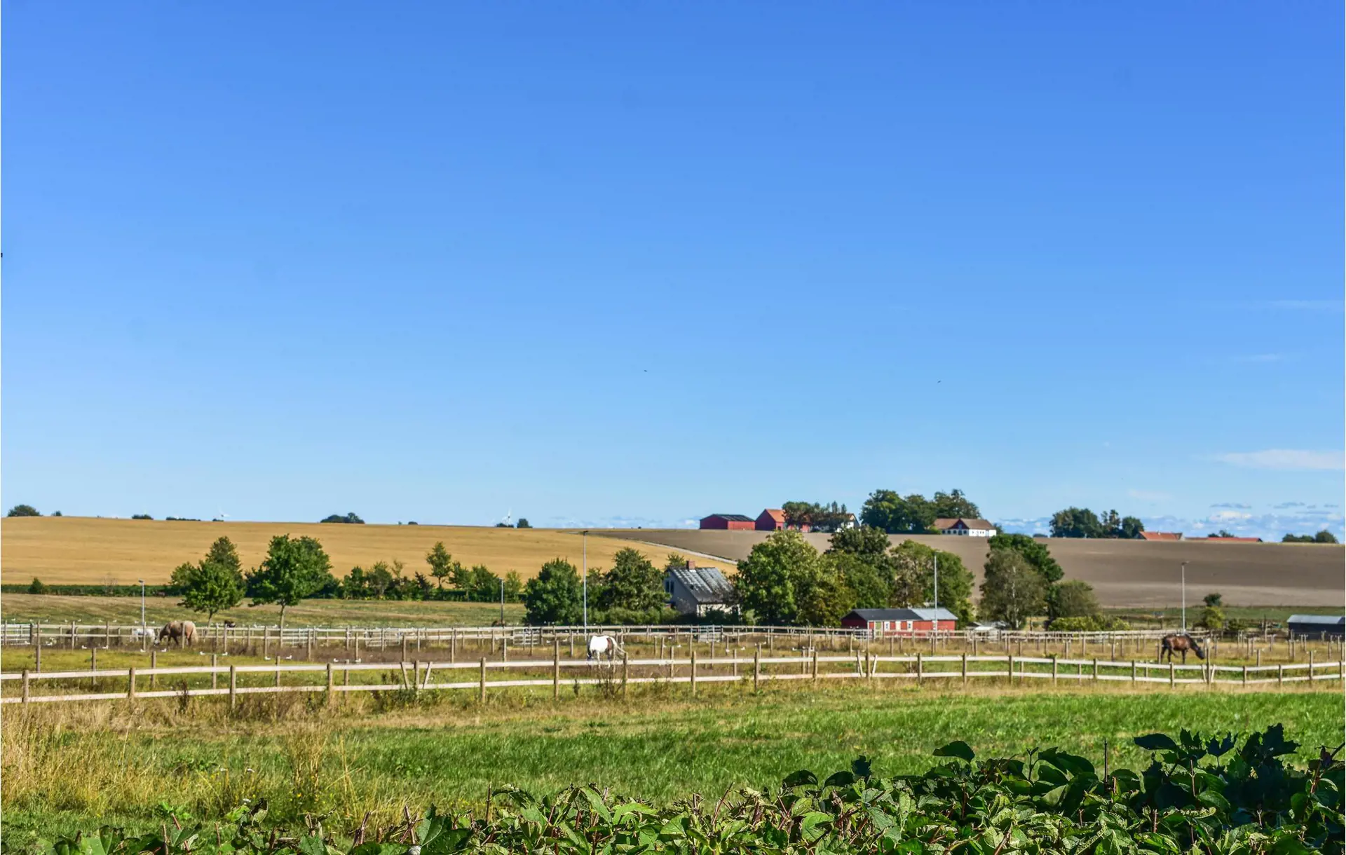 Genießen Sie erholsame Tage auf einem idyllischen Hof mit weitem Blick über Felder.