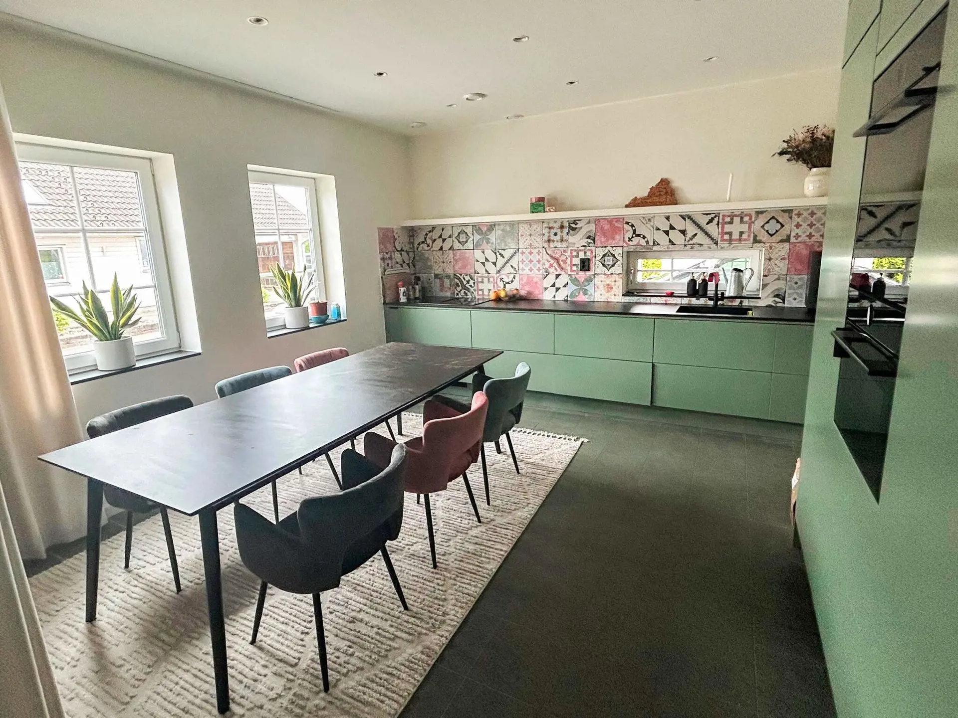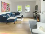 Vom Wohnzimmer aus hat man Zugang in den großen Garten mit einer großzügigen Holzterrasse und mehreren gemütlichen Sitzbereichen, wo Sie Ihre Mahlzeiten unter freiem Himmel genießen oder einfach die Ruhe des privaten Gartens genießen können.