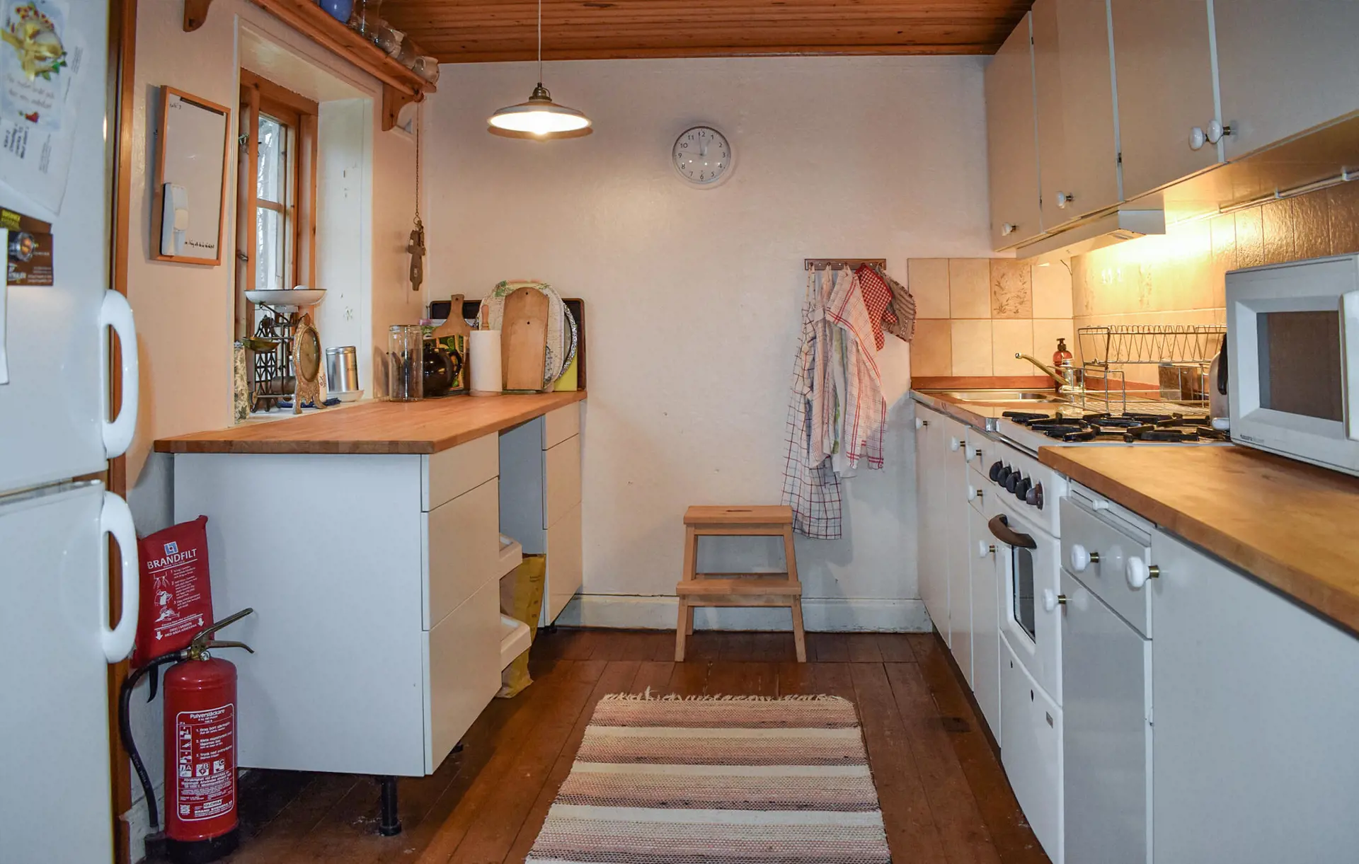 Dieses Haus ist wie geschaffen für eine erholsame Auszeit vom Alltag. Ein mit bequemem Mobiliar gemütlich gestalteter Wohnraum und eine praktische Küche sorgen für eine Atmosphäre, in der Sie schnell in den Urlaubsmodus kommen. Zaubern Sie gemeinsam leckere Mahlzeiten, hören Sie Ihre Lieblingsmusik und lassen Sie den Tag bei einem Glas Wein ausklingen.