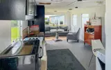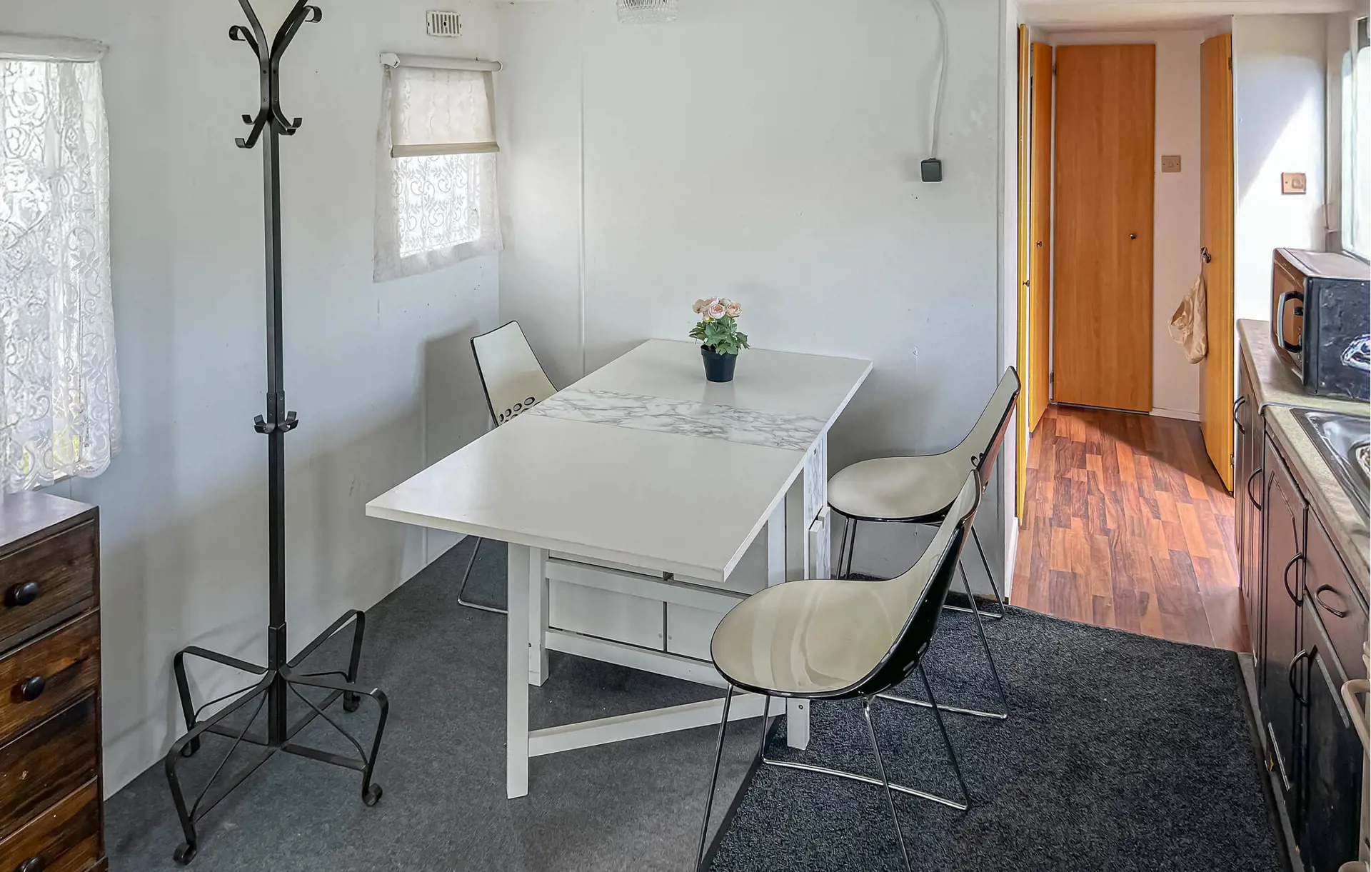 Treten Sie ein und lassen Sie sich von der gemütlichen, wohnlichen Atmosphäre dieses Mobilheims überraschen. Zaubern Sie hier Ihre Mahlzeiten mit Blick ins Grüne, planen Sie Ihre Unternehmungen bei harmonischen Mahlzeiten und lassen Sie einen langen Tag mit einem Brettspiel auf dem Sofa ausklingen.