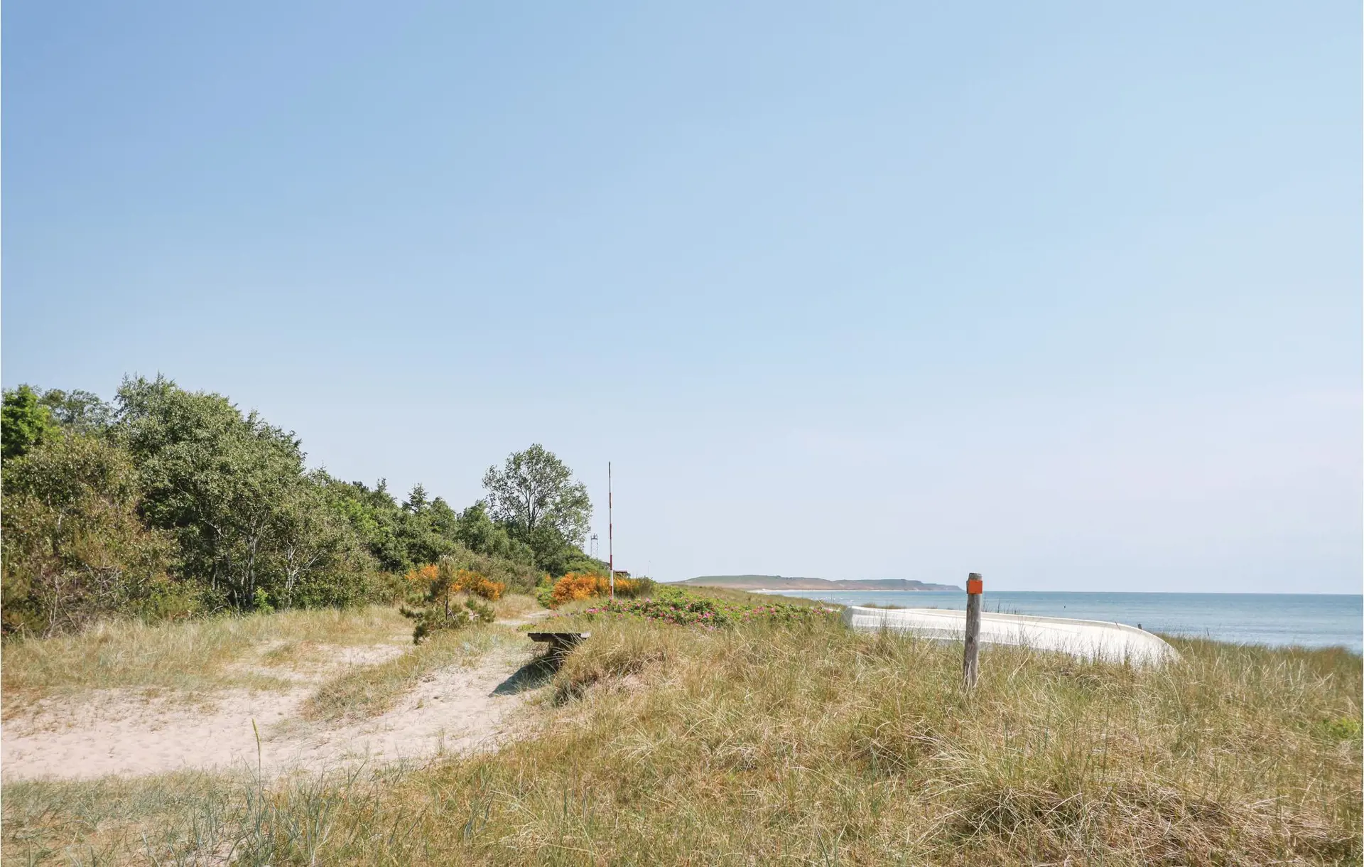 Dieses Ferienhaus liegt nicht weit vom Sandstrand Nybrostrands. Ein kurzer Fußweg die Treppe hinunter und quer über die Dünen bringt Sie zu einem der besten Strände Schwedens mit herrlichen Sonnenuntergängen. Als schönes Ausflugsziel bietet sich Kåseberga an, auch Ales Stenar, von wo es eine herrliche Aussicht gibt. Bei klarem Wetter können Sie bis nach Bornholm sehen. In Köpingsberg können Sie die Sektproduktion besichtigen, hier wird Schaumwein nach der Champagnermethode hergestellt, was für Schweden einzigartig ist. In Ystad werden Sie mit einem roten Feuerwehrauto auf einer Stadtrundsfahrt teilnehmen. Wieder zu Hause, werden Sie bestimmt gerne auf der Terrasse grillen und zu abendlichen Schwimmen zum Strand gehen.