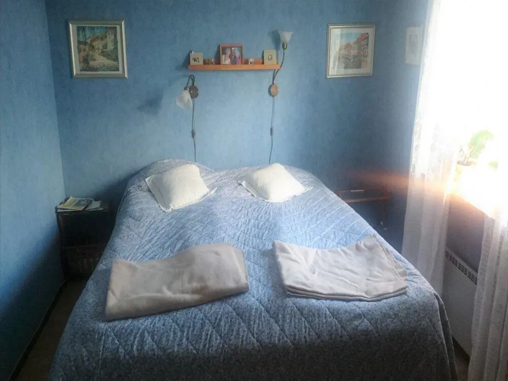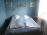 Es gibt zwei Schlafzimmer. In einem größeren Schlafzimmer steht ein Doppelbett und in einem kleineren ein Etagenbett mit zwei Betten. Das kleinere Schlafzimmer hat keine Tür.