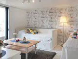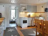 Das traditionelle Holzhaus aus dem Anfang des 20. Jahrhunderts erinnert an vergangene Zeiten und ist heute gemütlich eingerichtet und ideal für eine vierköpfige Familie. Es gibt ein Schlafzimmer mit einem 80 cm breiten Einzelbett. Im Wohnzimmer steht ein Tagesbett, das tagsüber als Sofa genutzt werden kann und abends leicht in eine 160 cm breite Liegefläche umgewandelt werden kann. Es gibt auch ein weitere, 120 cm breites Einzelbett im Raum.