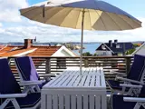 Von Ihrem Parkplatz am Bürgersteig des Strandvägen führt eine Treppe hinauf zu einem großen Terrassenbereich und zum Eingang der Wohnung. Im Inneren treffen Sie auf eine kleine Küche/Küchenzeile mit Herd, Mikrowelle, Kühlschrank mit Gefrierfach und Kaffeemaschine, ein Schlafzimmer mit großem bequemen Doppelbett und TV, Wohnzimmer mit Essecke, TV und zwei Schlafsofas, Bad mit Dusche. Auf der Terrasse gibt es Gartenmöbel und Grill für Sommertage. Ein Teil der Terrasse ist überdacht, sodass Sie wahlweise Sonne oder Schatten haben. Genießen Sie hier drauße mit Meerblick die Mahlzeiten und Sonnenstunden des Tages!