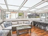 Vom Küchenbereich kommen Sie zum "Herz der Villa"; einem großen, schön verglasten Wintergarten mit einer gemütlichen Lounge-Sitzgruppe, einer Essgruppe und einem Grill. Über die Schiebetüren des Wintergartens gelangen Sie auf einen Terrassenbereich mit Gartenmöbeln. Großzügige Flächen, perfekt für Sonnentage und Grillabende mit entspannter Atmosphäre.