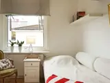 Von der Diele aus führt eine Treppe hinauf ins Dachgeschoss. Dort trifft man zuerst auf eine Empore mit Ausgang zu einem kleinen Balkon. Außerdem liegen oben vier weitere Schlafzimmer; zwei mit Doppelbett, die beiden anderen mit je einem Einzelbett. Zudem großes, schönes Badezimmer mit Dusche, Fußbodenheizung und Waschmaschine. Außerdem WLAN per Glasfaser im Haus.