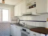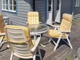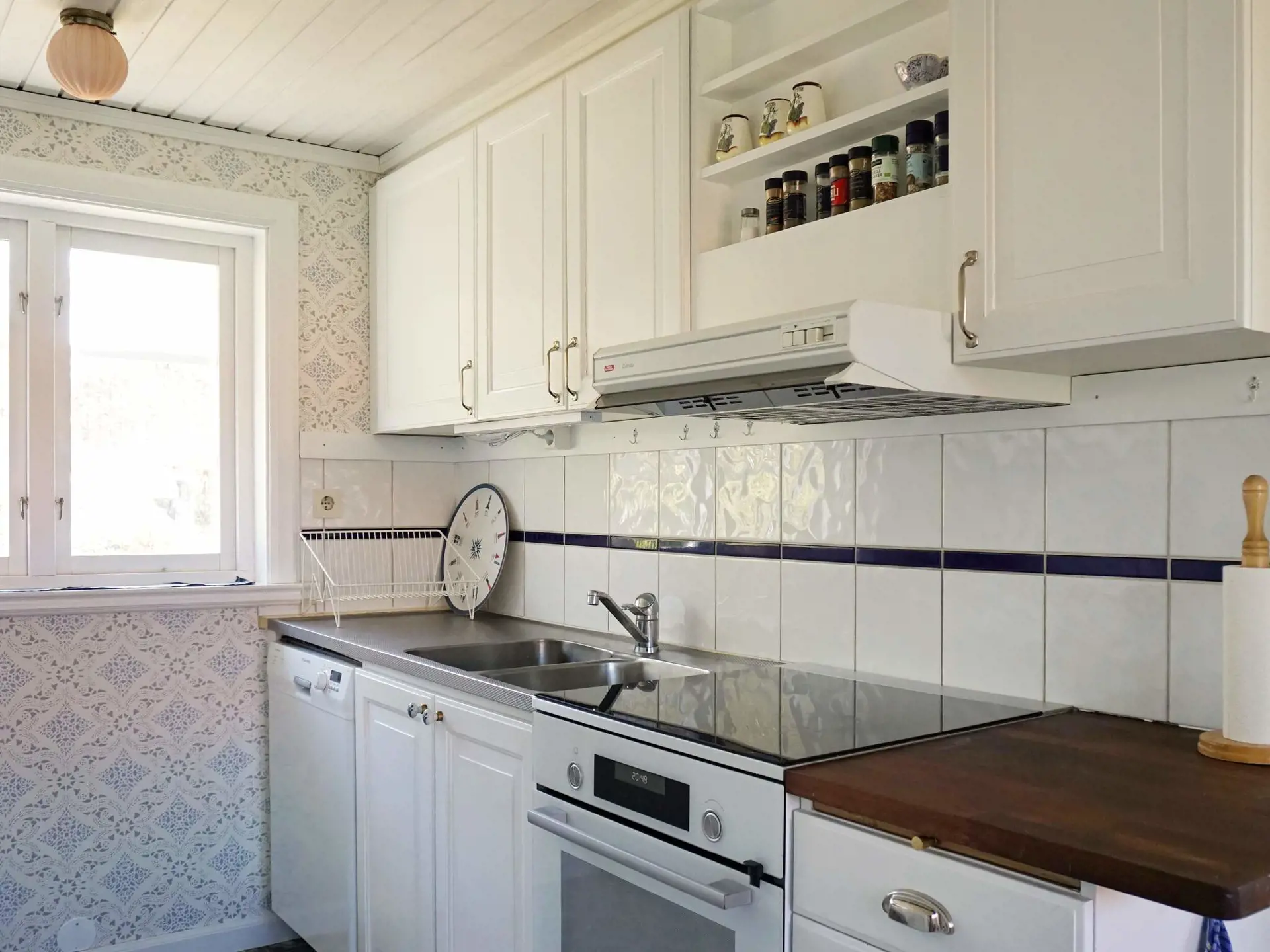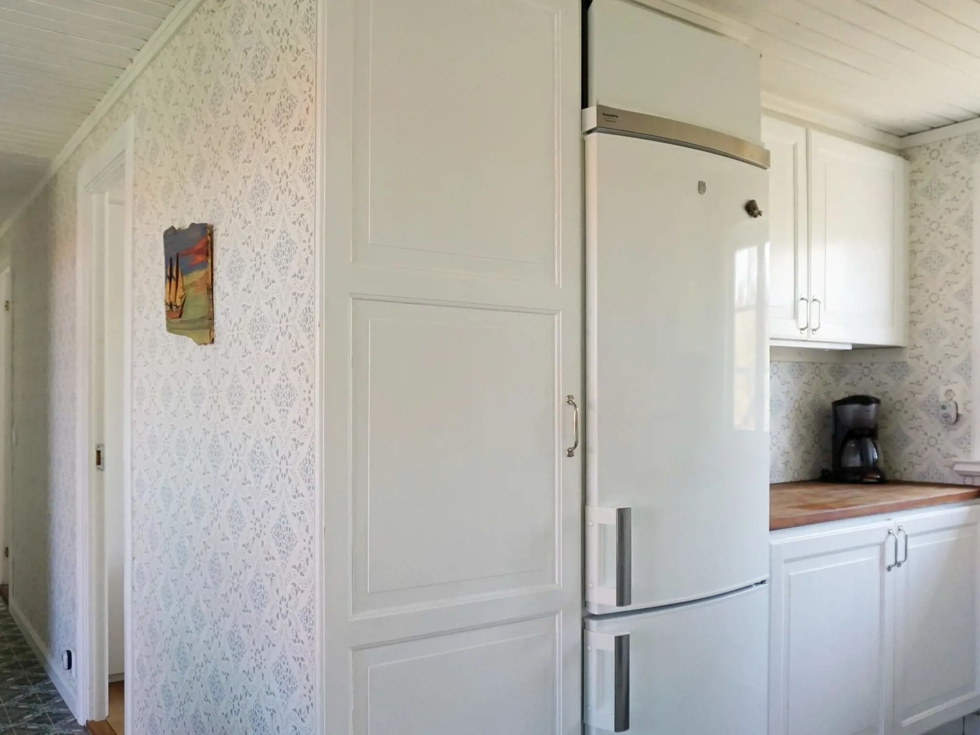 Über eine einladende Veranda mit Gartenmöbeln gelangt man zur Eingangstür des Ferienhauses. Im Inneren trifft man auf einen Flur, der weiter zur Küche mit Herd, Kühl-/Gefrierschrank, Mikrowelle, Kaffeemaschine und Geschirrspüler führt. Die kleine Küche ist offen in den Wohn- und Essbereich integriert, der herrliche Aussicht bietet! Für das Familienleben gibt es eine Sitz- und Leseecke sowie TV. Das Ferienhaus hat drei Schlafzimmer; eines mit Doppelbett und zwei mit Einzelbett. Im Haus auch WC und separates Duschbad, in dem sich auch eine Waschmaschine befindet. Glasfaseranschluss im Haus.