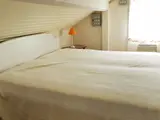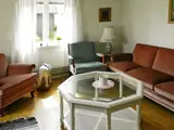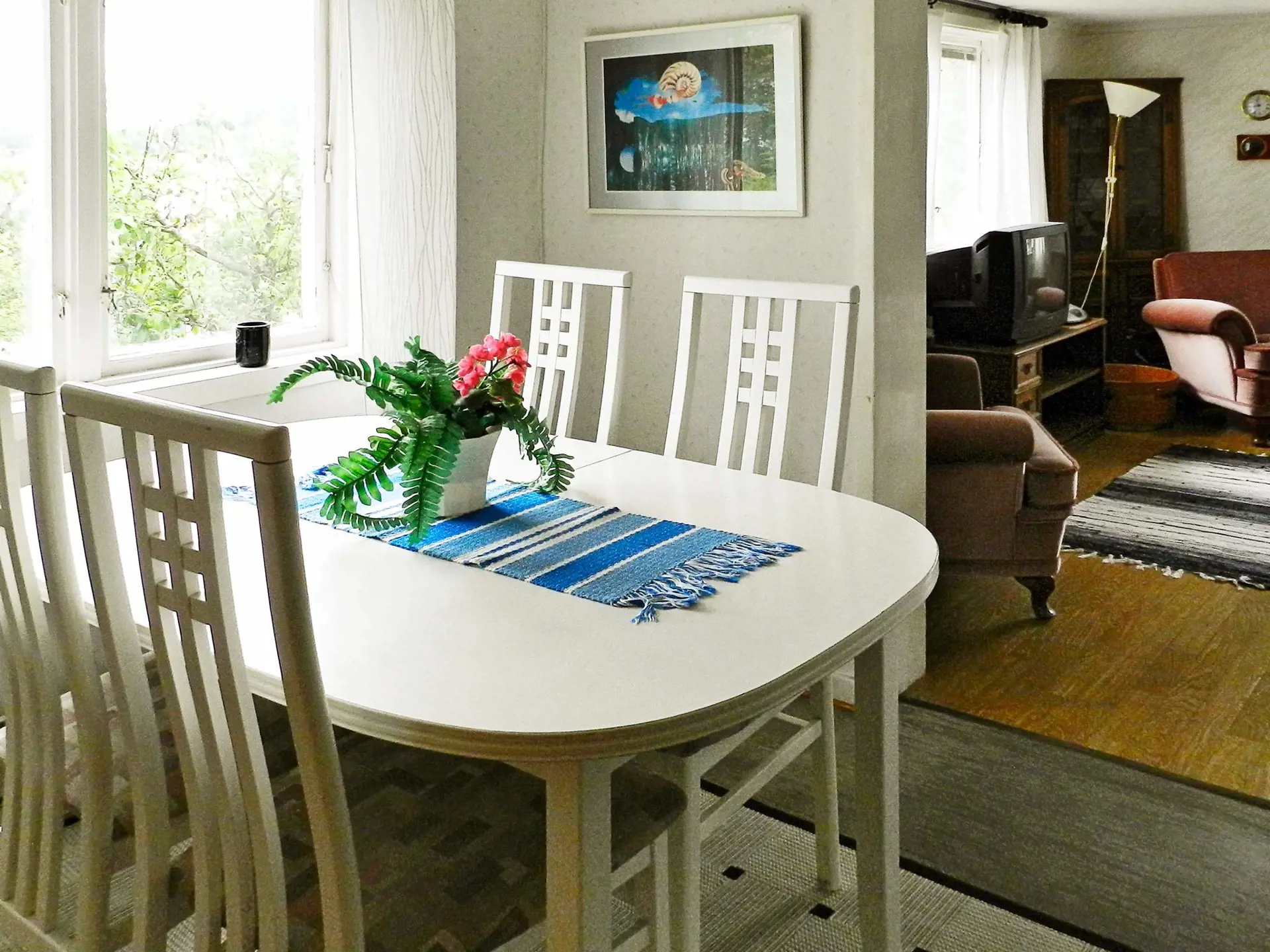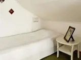 Ferienhaus in ruhiger, gut abgeschirmter Lage unweit der Ostsee. Sie wohnen hier nördlich vom Urlaubsort Lysekil. Im Parterre gemütlicher Wohnbereich und nebenan helle, kleine Küche mit Essecke. Im offenen Anschluss daran, ohne Zimmertür, geräumiges SZ mit 1DB und schönem Ausblick in die grüne Umgebung mit einigen Nachbarhäusern. Eine schmale Treppe führt hinauf in die obere Etage mit 2 SZ unter dem Dach, beide mit Teppichboden und max. 180 cm Raumhöhe. Separater Annex unweit des Hauses mit Dusche/WC, Waschmaschine und Sauna. Vor dem Eingang zum Haupthaus kleine Terrasse mit Sitzgelegenheiten für 4 Personen.