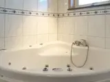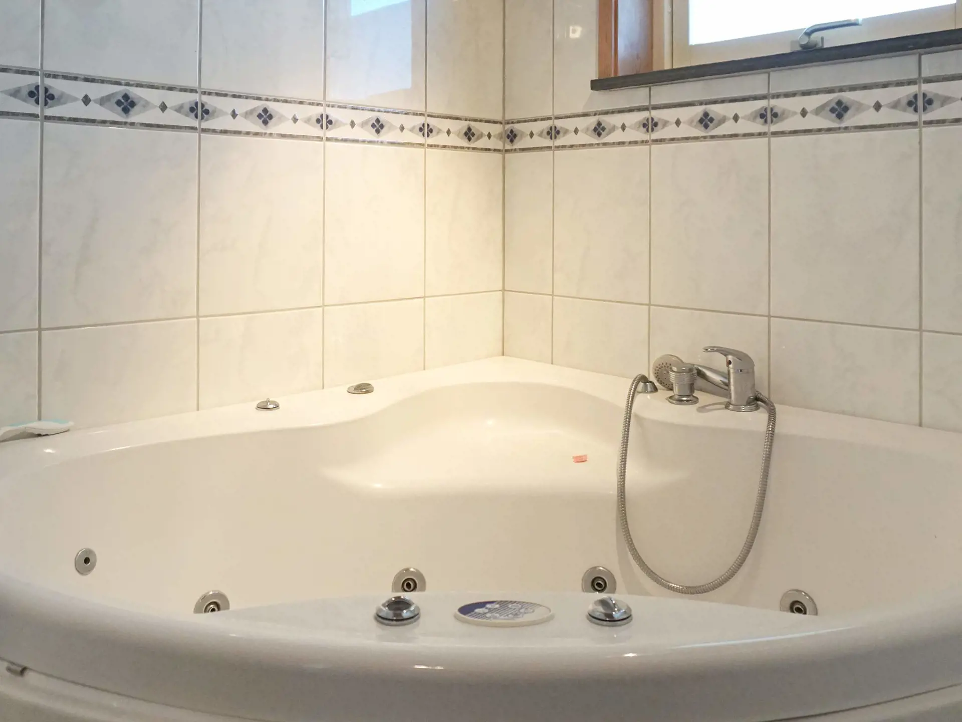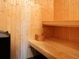 Das Badezimmer ist in zwei Bereiche aufgeteilt; einer mit Sauna, Whirlpool und Dusche und ein zweiter mit Toilette, Waschmaschine und Wäschetrockner. Es stehen drei Schlafzimmer bereit; eines mit einem großen, bequemen Doppelbett, das zweite mit einem 120 cm breiten Bett und das dritte mit zwei Einzelbetten (Einzelbett + Ausziehbett). In diesem Raum führt eine kleine Treppe hinauf zu einem gemütlichen Schlafboden/Hems.