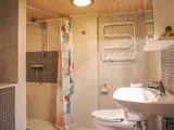 Durch den einladenden Eingang betreten Sie das Obergeschoss des Hauses mit offenem Grundriss, die vielen Fenster und Terrassentüren in mehrere Richtungen sorgen für eine helle und wunderbar gemütliche Atmosphäre. Auf der Eingangsebene befinden sich eine offene Küche mit Herd, Kühl-/Gefrierschrank, Mikrowelle, Kaffeemaschine und Geschirrspüler, ein großer Essbereich, ein Wohnzimmer mit wunderbar bequemer Sofagruppe, wärmendem Holzofen, Leseecke und Fernseher, zwei Schlafzimmer, eines mit Doppelbett und eines mit Einzelbett (140 cm breit), Badezimmer mit Fußbodenheizung und Dusche. Vom Wohnzimmer und Esszimmer führen Türen auf die sonnige große Terrasse des Ferienhauses mit Gartenmöbeln und Grill, wo Sie gute Mahlzeiten genießen, ein Sonnenbad nehmen, ein gutes Buch lesen oder vielleicht einfach nach einem wunderbaren Tag am Strand oder auf dem Golfplatz entspannen können. Im Untergeschoss befinden sich das zweite Badezimmer des Ferienhauses mit Fußbodenheizung und Dusche, eine Sauna, eine Waschküche, ein Wohnzimmer und ein Schlafzimmer. Von der Terrasse führt eine Treppe hinunter zum Anbau des Ferienhauses mit einem Schlafzimmer mit Einzelbetten. Außerhalb des Nebengebäudes erstreckt sich ein schöner, gepflegter Garten mit Rasen, der sich perfekt für alle Arten von Spielen eignet. Das Ferienhaus ist mit WLAN ausgestattet.