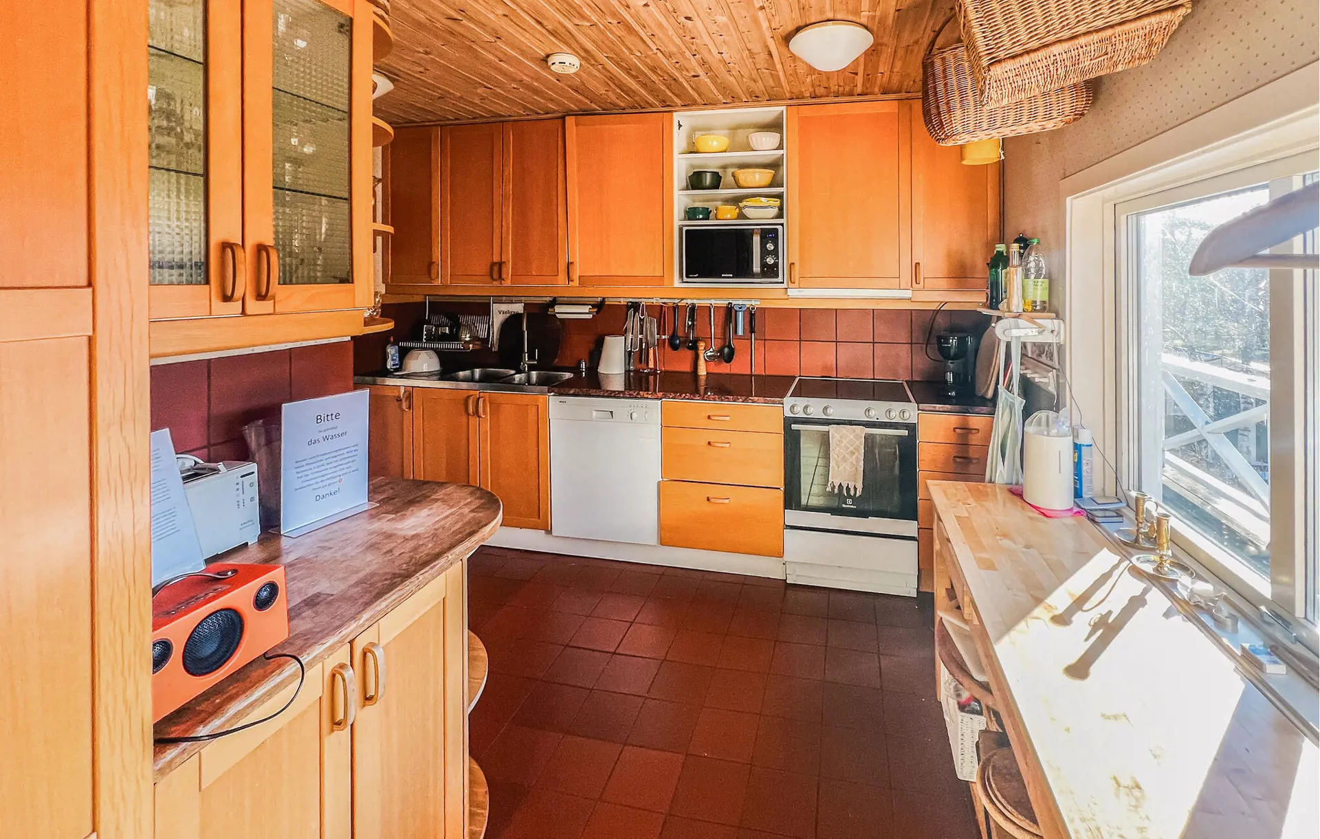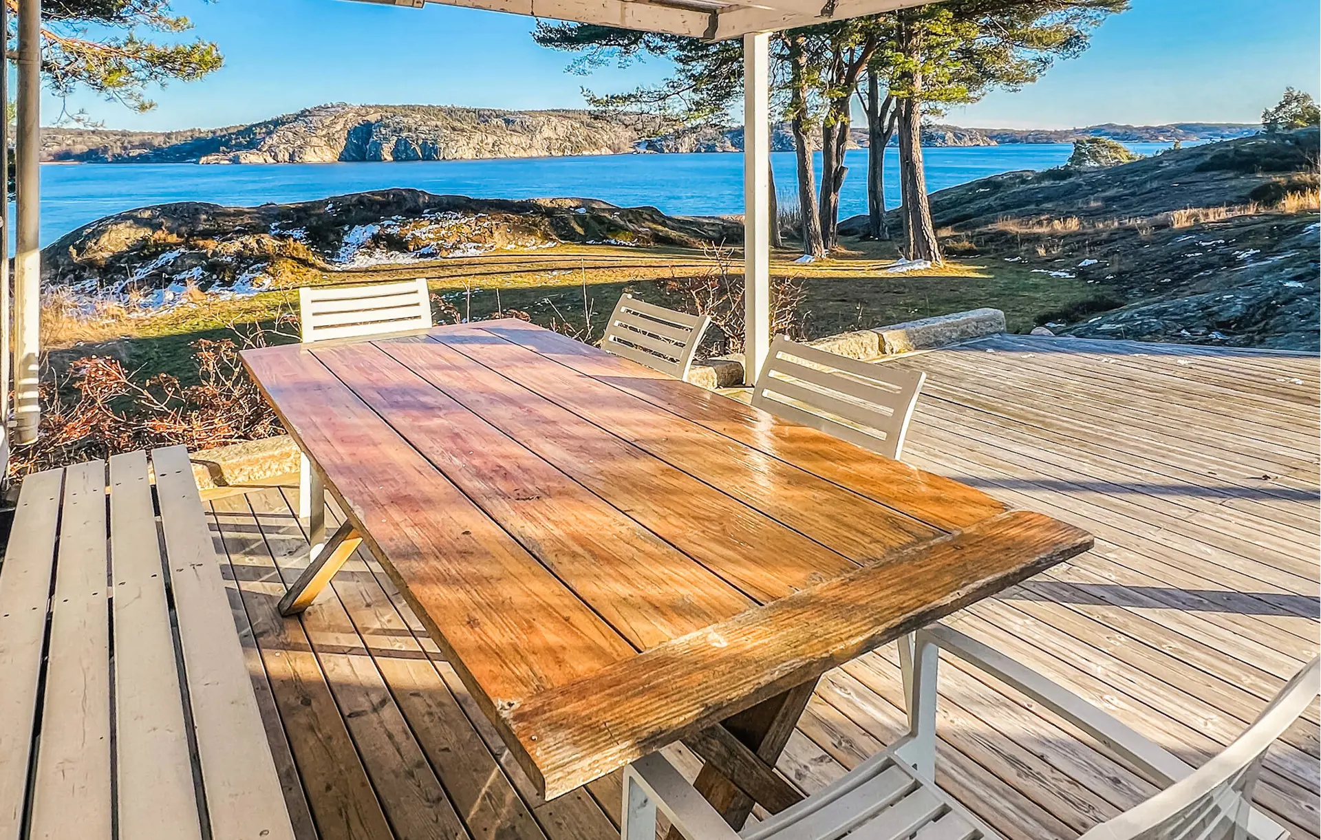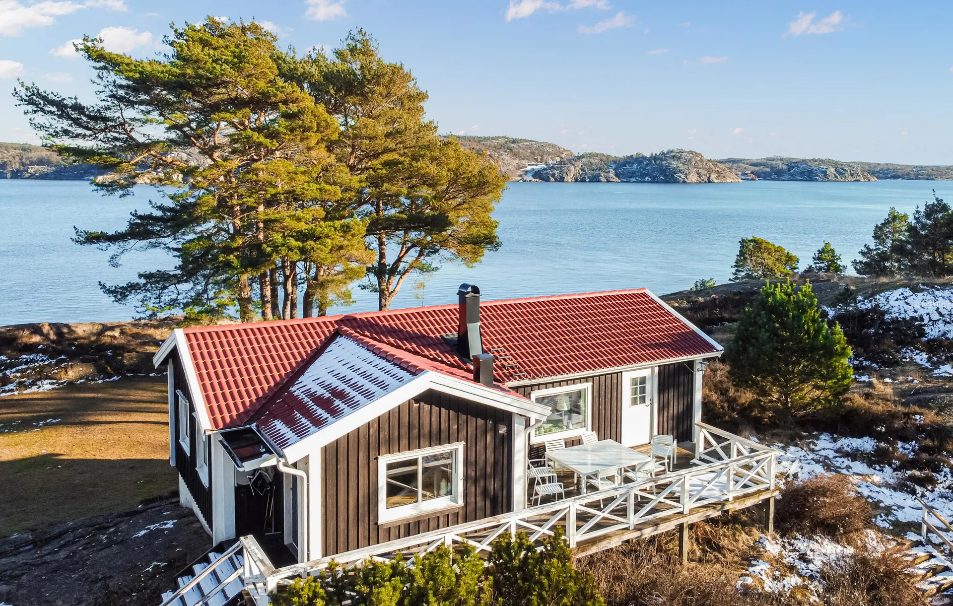 In diesem Ferienhaus wohnen Sie ganz für sich allein, umgeben von Wäldern, Wiesen und Felsen, und Sie können sich jeden Morgen auf einen zauberhaften Ausblick freuen. Nutzen Sie die großzügige Terrasse mit zwei Sitzgruppen und Gartentischen für Ihre Zeit im Freien. Frühstücken Sie mit Blick aufs Wasser oder genießen Sie abends ein leckeres Dinner unter freiem Himmel. Lassen Sie Ihre Kinder auf dem weitläufigen Grundstück spielen, sammeln Sie in den Wäldern in der Umgebung Beeren und Pilze und packen Sie im Sommer für Ausflüge den Picknickkorb und die Badesachen ein.
