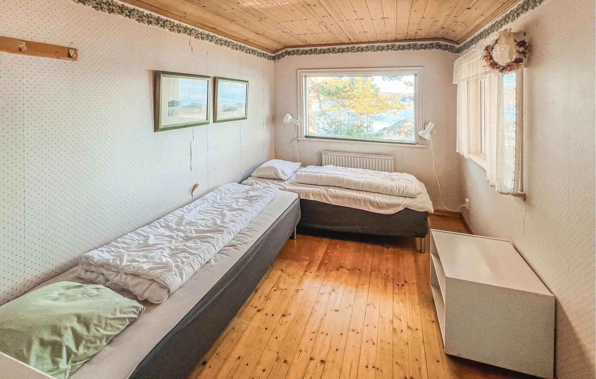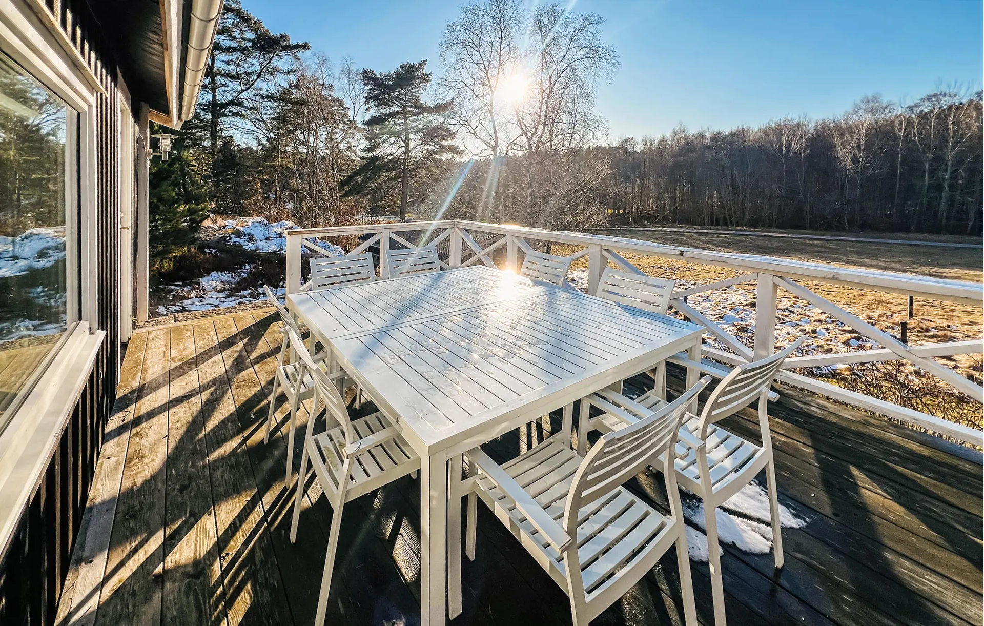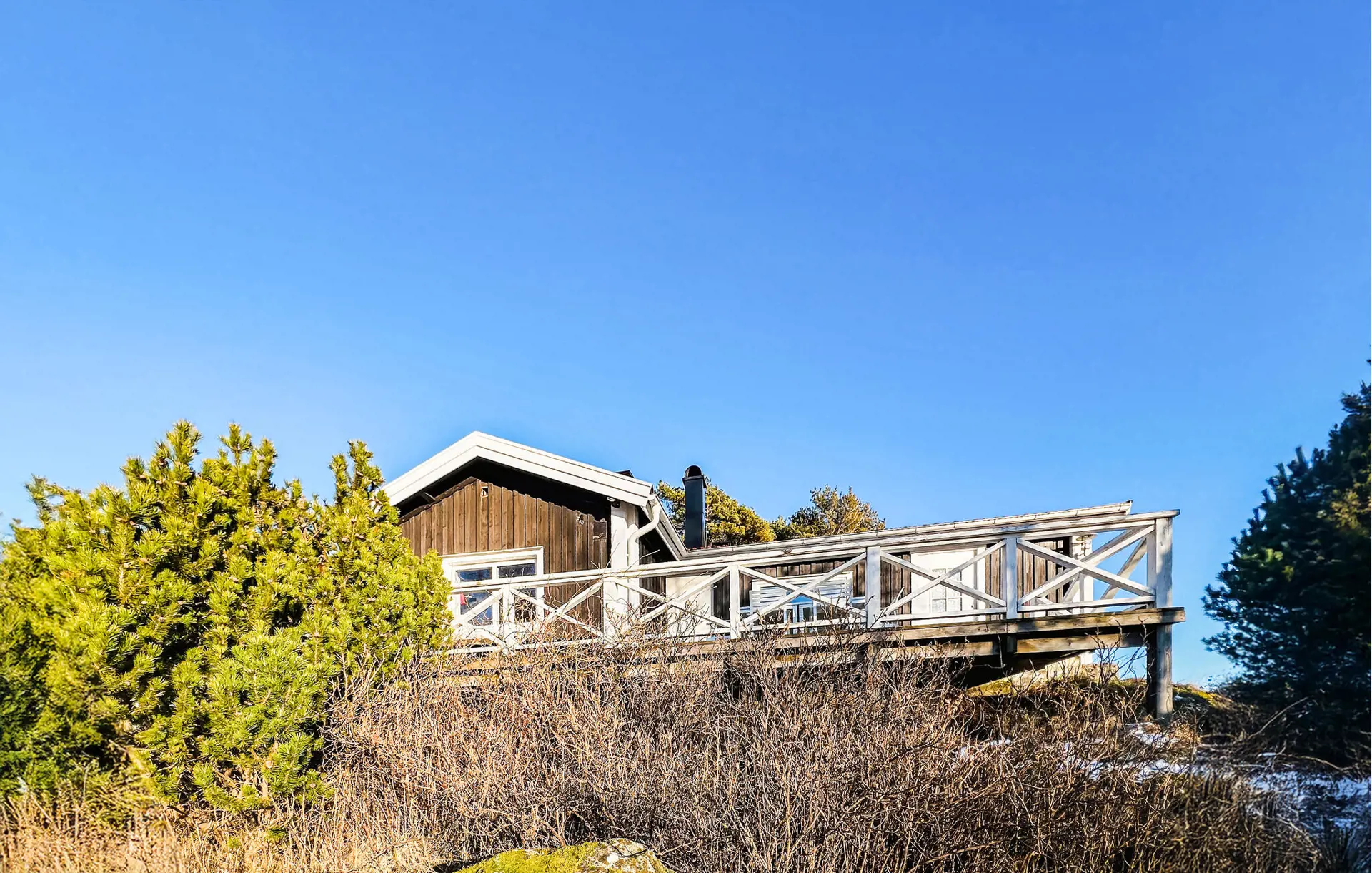 In diesem Ferienhaus wohnen Sie ganz für sich allein, umgeben von Wäldern, Wiesen und Felsen, und Sie können sich jeden Morgen auf einen zauberhaften Ausblick freuen. Nutzen Sie die großzügige Terrasse mit zwei Sitzgruppen und Gartentischen für Ihre Zeit im Freien. Frühstücken Sie mit Blick aufs Wasser oder genießen Sie abends ein leckeres Dinner unter freiem Himmel. Lassen Sie Ihre Kinder auf dem weitläufigen Grundstück spielen, sammeln Sie in den Wäldern in der Umgebung Beeren und Pilze und packen Sie im Sommer für Ausflüge den Picknickkorb und die Badesachen ein.
