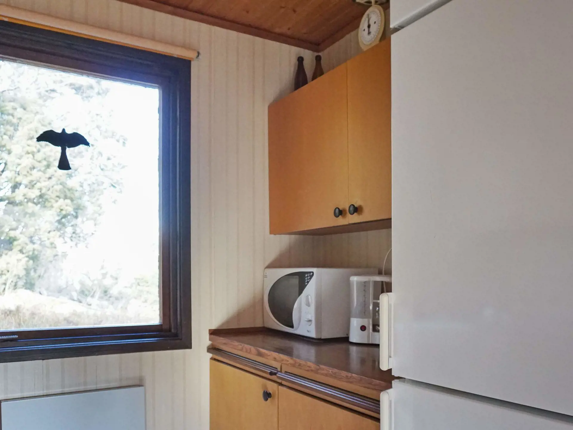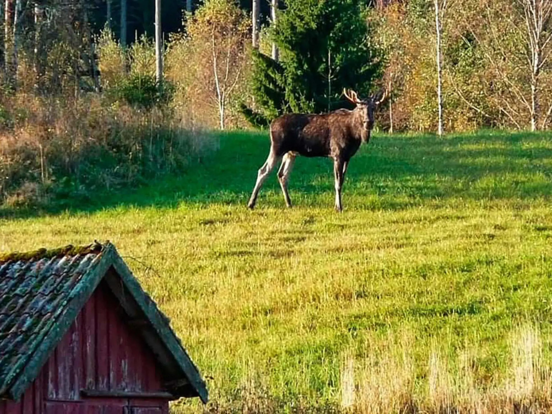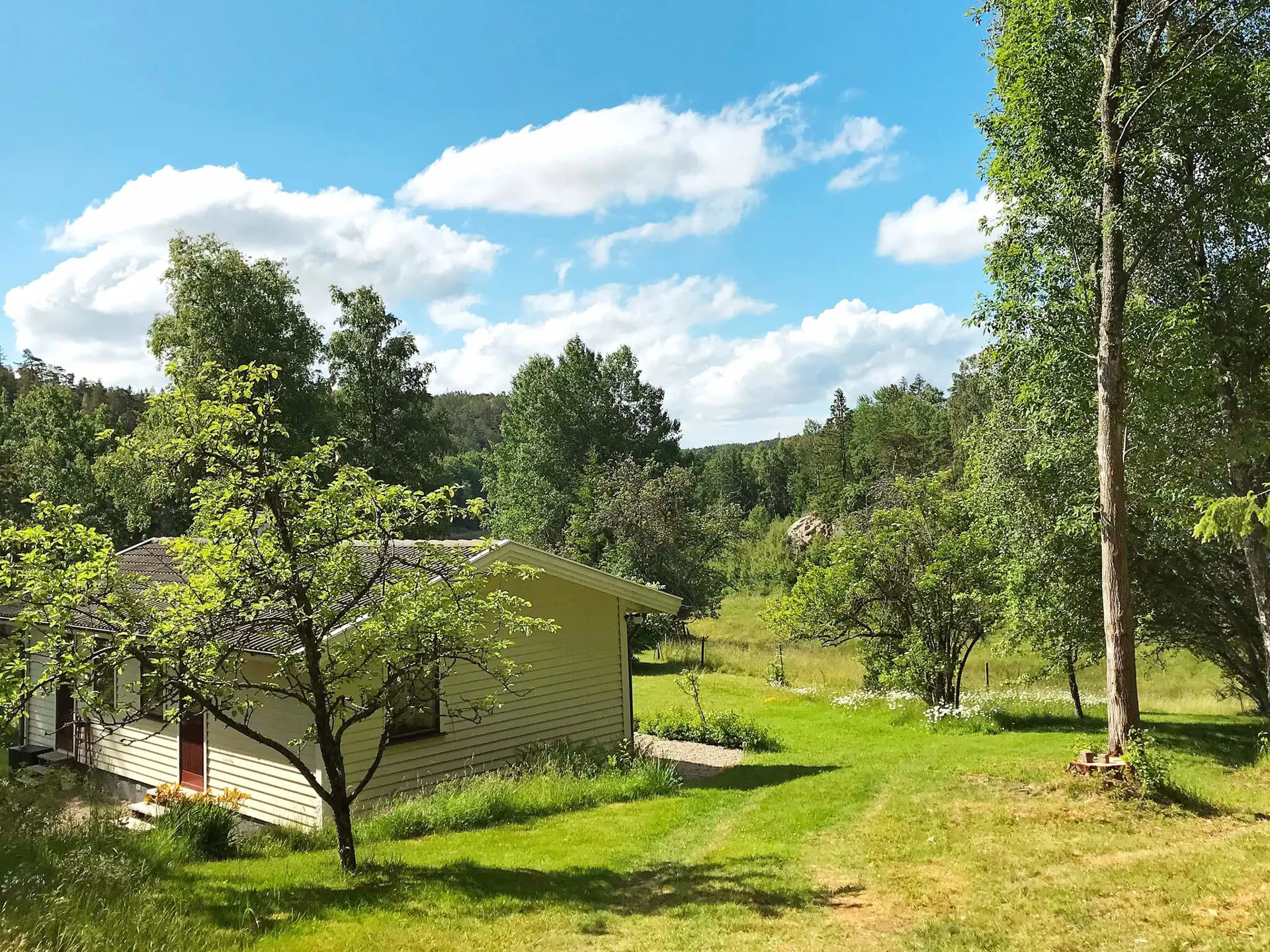 Das Ferienhaus liegt malerisch an einem Hang hinunter zu einem See. Hier können Sie die Morgensonne mit einem Kaffee in der Hand geniessen, während die Natur mit Vogelgezwitscher aufwacht und vielleicht haben Sie as Glück, sowohl Rehe als auch Elche in der Umgebung vorbeiziehen zu sehen. Durch den Eingang betreten Sie eine Halle und weiter in den Wohnbereich mit einem warmen, gemütlichen Holzofen. Im Haus gibt es eie gute ausgestattete Küche mit Herd, Mikrowelle, Kühl- / Gefrierschrank und Kaffeemaschine, Essbereich mit Essbereich mit Essgruppe, zwei Schlafzimmer mit 2 Einzelbetten in jedem Zimmer und Bad mit Dusche. Vom Wohnzimmer aus erreichen Sie die überdachte Terrasse, ein schöner Ort, um die Sonne nachmittags zu genießen, während Sie sich ein gutes Stück Essen grillen. Von der Terrasse geht es nach unten auf das Grundstück, das groß ist und mit schönen Möglichkeiten zum Sonnenbaden oder einer Weile zum Spielen und Spielen.