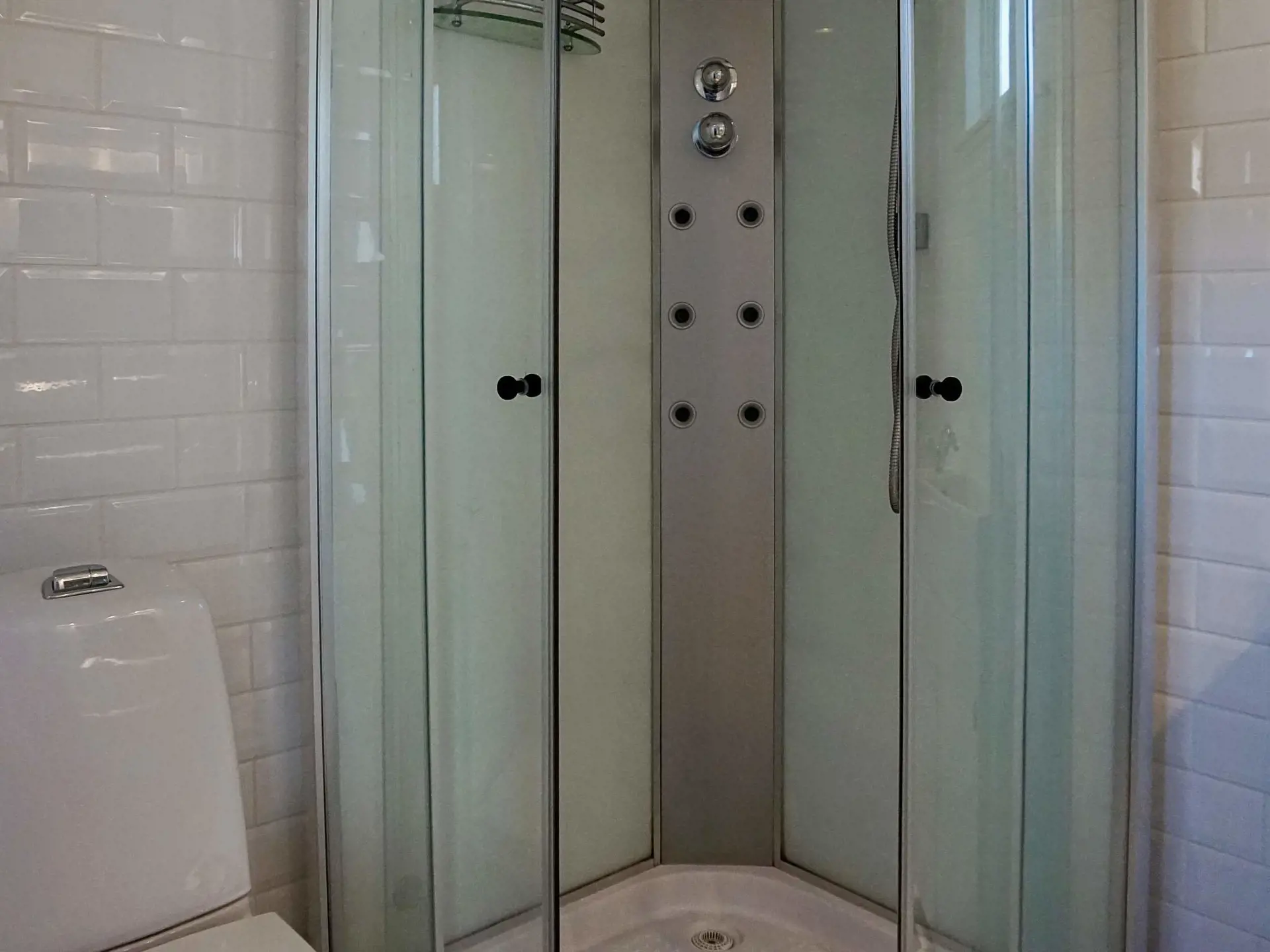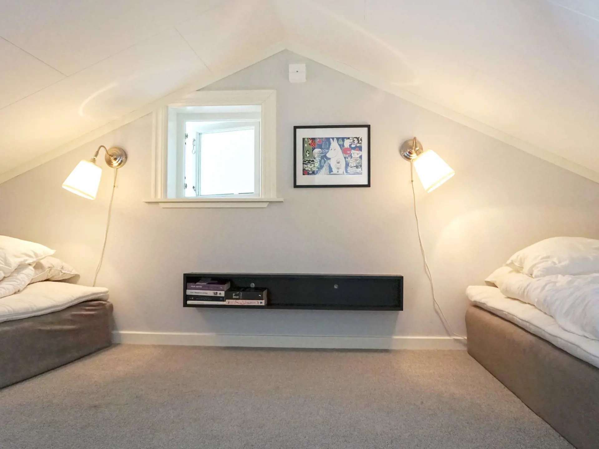 Im Haus gibt es einen größeren Küchen-/Wohnbereich mit gemütlicher Sitzecke, praktischem Esstisch und zeitgemäßer Kochnische mit modernem Gas-Herd (die Eigentümer weisen Sie gerne in die Nutzung ein). Das Badezimmer ist ebenfalls hell und ansprechend. Über eine Leitertreppe gelangt man hinauf auf den Schlafboden mit zwei Einzelbetten und ggf. Platz für eine lose Matratze. Das Fenster nach draußen sowie zum Wohnbereich darunter sorgen hier für ein taghelles, luftiges Ambiente. Zur technischen Ausstattung gehören WLAN und TV-Gerät mit Chromecast. Waschmaschine in sepatatem Gebäude. Vor dem Ferienhaus lädt eine kleine Holzterrasse mit Sitzgelegenheiten zum Aufenthalt im Freien ein.