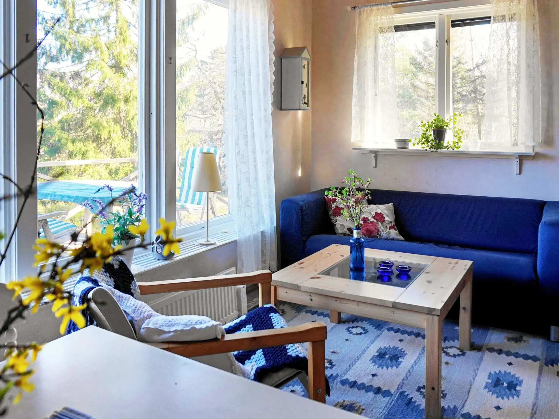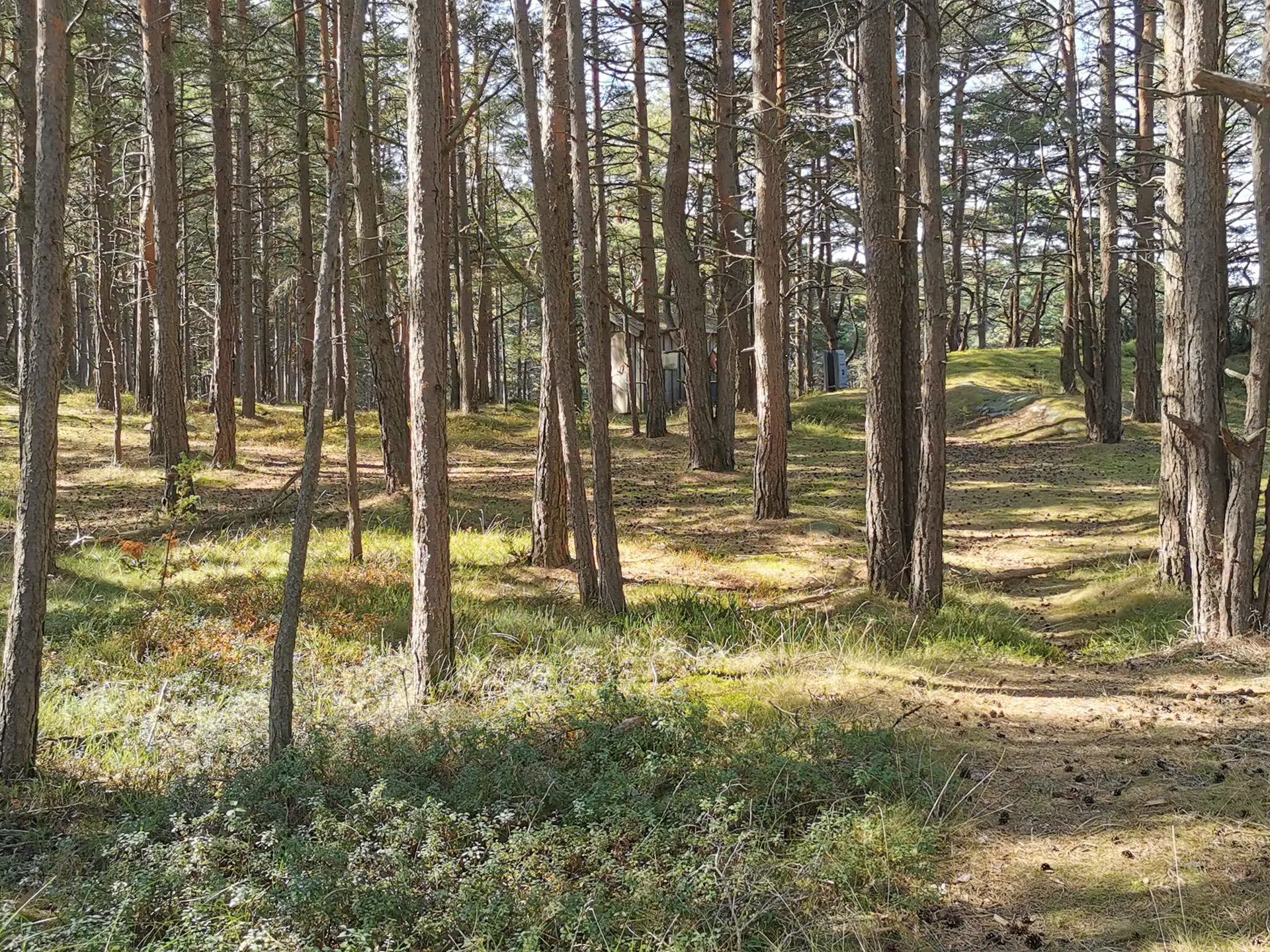 Zum Häuschen gehört ein attraktives, unebenes Naturgrundstück mit einigen schützenden Bäumen, das unweit des Wanderweges Kuststigen liegt. In der Umgebung findet man zur richtigen Jahreszeit Blaubeeren und im Spätsommer Pilze, zudem gibt es auch Kleinwild und gelegentlich Elche zu sehen.
