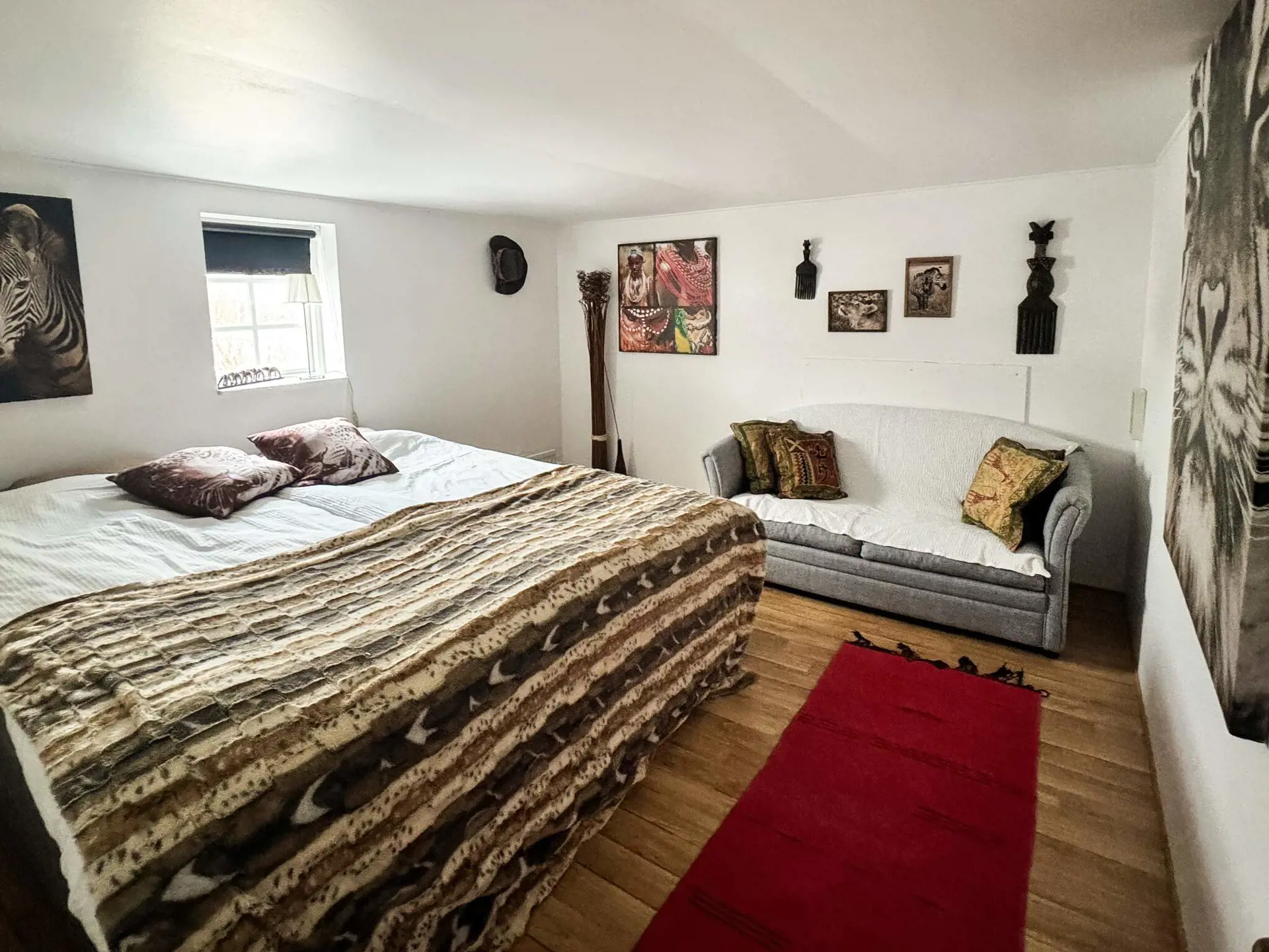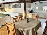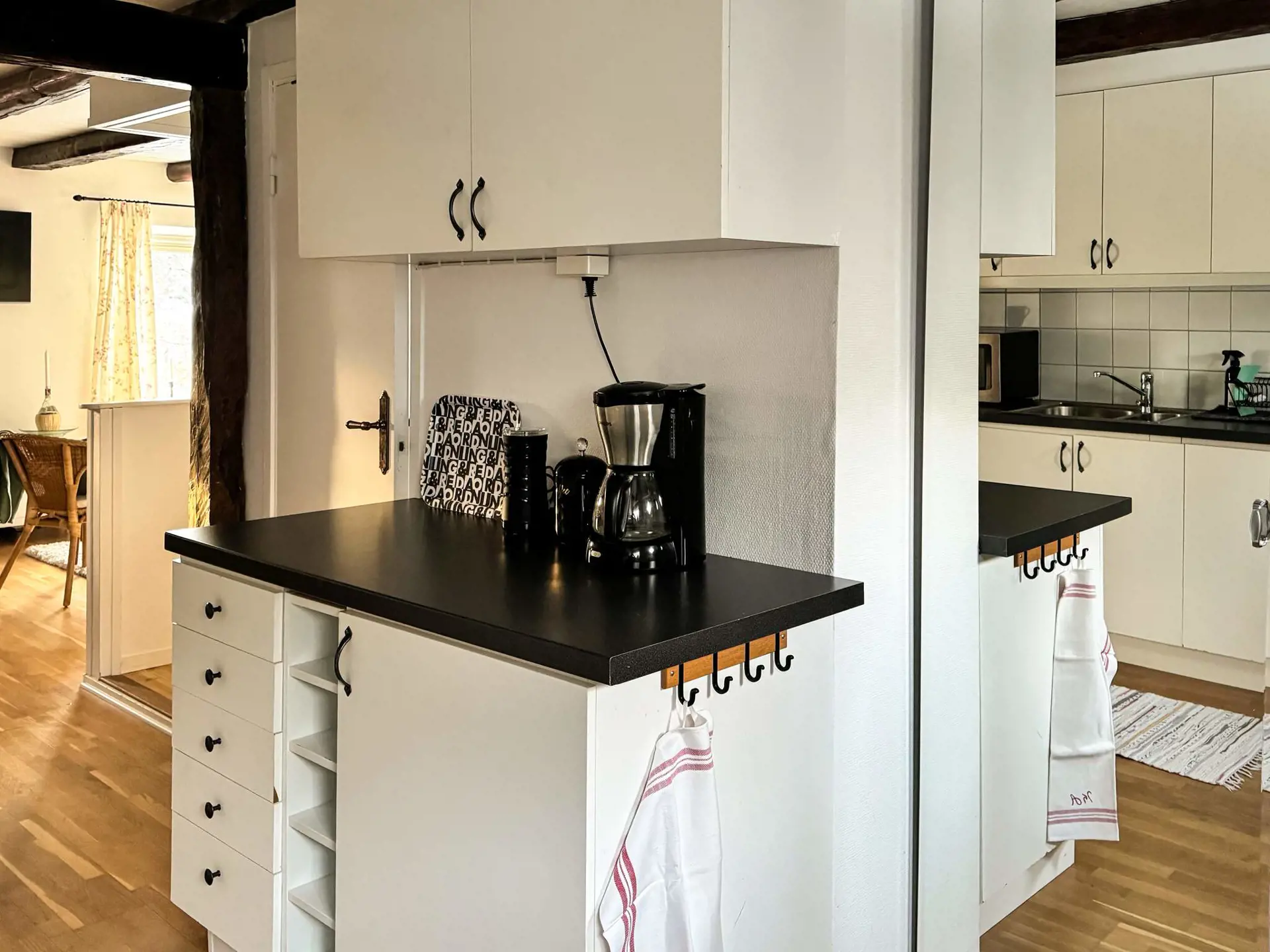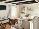 Hier wohnen Sie in einer gemütlichen Wohnung, die sich in einer umgebauten Scheune auf einem ländlichen Grundstück mit schöner Umgebung befindet. Innen werden Sie von einer voll ausgestatteten Küche direkt hinter der Tür und einem praktischen Platz zum Aufhängen im Flur empfangen. Im Erdgeschoss gibt es außerdem ein Schlafzimmer mit Doppelbett und ein Familienzimmer mit Küchensofa und Esstisch für sieben Personen sowie eine bequeme Sitzgruppe vor dem Smart-TV. Badezimmer mit Dusche, Waschbecken und Toilette.