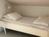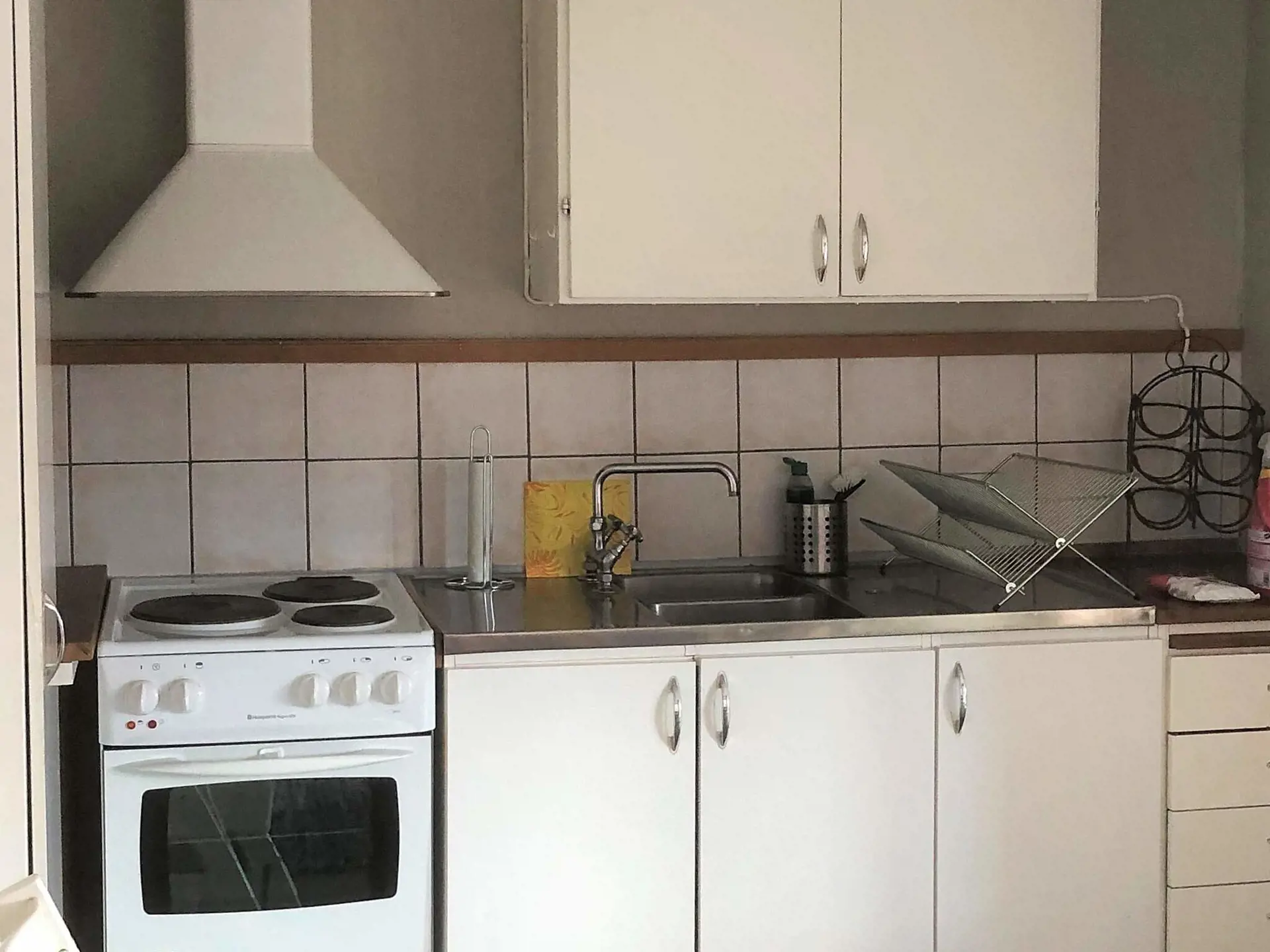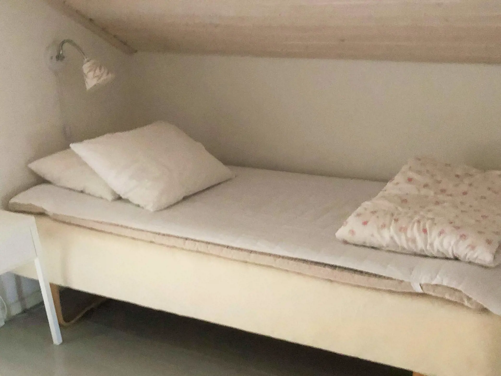 Das Ferienhaus besteht aus einem Wohnzimmer mit Sitzecke vor dem Fernseher, einer Küche und einem WC mit Dusche im unteren Stockwerk. Tür zum Obergeschoss und hier befinden sich die Schlafzimmer mit Einzelbetten und einem Kinderbett, zwei davon sind Durchgangszimmer.