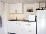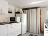 Die Wohnung liegt auf einer Ebene und verfügt auch über eine kleine Terrasse hinter dem Haus mit Gartenmöbeln. Vom Eingang gelangt man in einen kleinen Flur und weiter in ein Schlafzimmer mit zwei bequemen Einzelbetten. Im Anschluss an das Schlafzimmer befindet sich das Familienzimmer, hier gibt es eine Küchenzeile mit u.a. einem Tischherd, einem Kühl-/Gefrierschrank, einer Kaffeemaschine, einem Schlafsofa und Küchenmöbeln sowie einem Hochstuhl. Badezimmer mit Dusche.