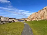 Vom Eingang aus gehen Sie um das Ferienhaus herum zur Sonnenseite, die dem Meer zugewandt ist. Hier gibt es Gartenmöbel und einen Grill, ein schöner Ort, um die Morgensonne zu genießen, während Sie frühstücken oder in der Abendsonne grillen. Wenn der Eigentümer des Ferienhauses nicht gerade selbst vor Ort ist, haben Sie zudem freien Zugang zum Verandabereich des Ferienhauses mit Meerblick.