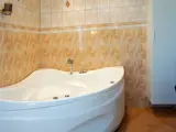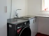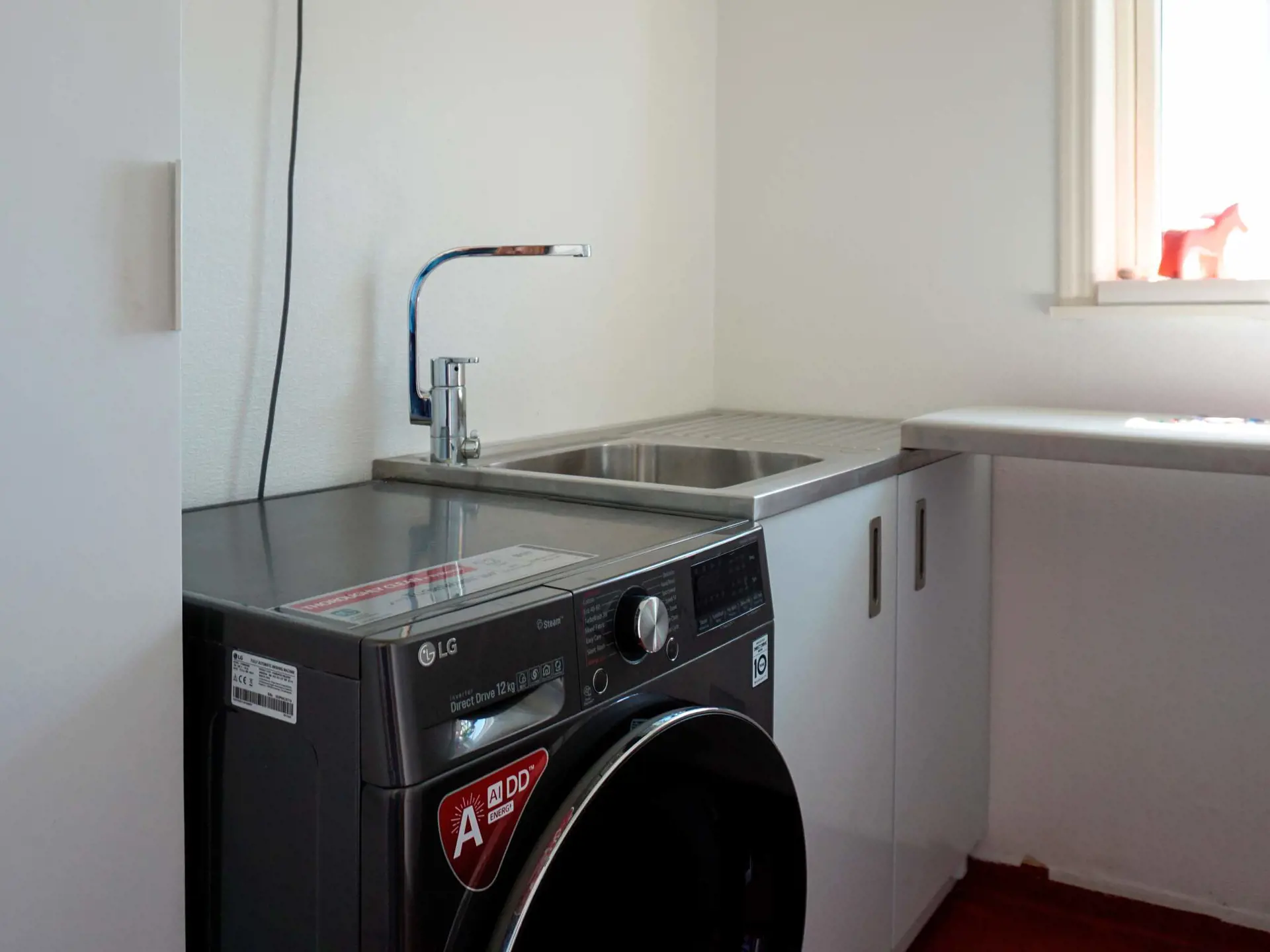 The villa is on one level with an associated large patio area with a pergola roof over the dining area. Through the cottage's entrance you enter an open and pleasant layout with a hall, open kitchen with dining area and a TV corner with a comfortable sofa. The kitchen is equipped with a stove, separate oven, microwave, fridge/freezer, coffee maker and dishwasher. The villa has 3 bedrooms, one with a large double bed of 200 x 200 cm, one with two single beds and one with a sofa bed, living room with large corner sofa, a large bathroom with SPA bath, shower and underfloor heating, a toilet with underfloor heating and a laundry room with washing machine. Through the kitchen you reach the cottage's large patio area with summer furniture. At the back of the villa there is a lawn with various play equipment, a nice place for all kinds of games and games. The villa has fiber connection.