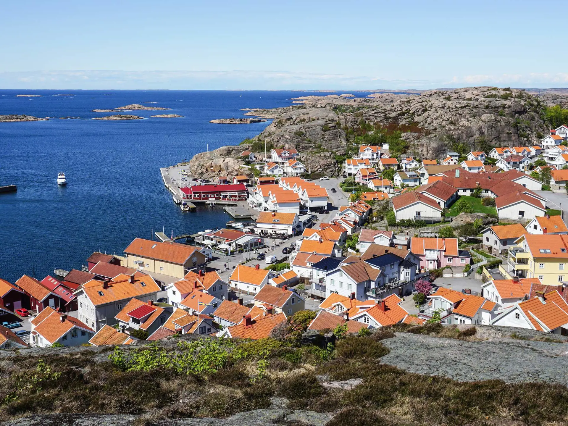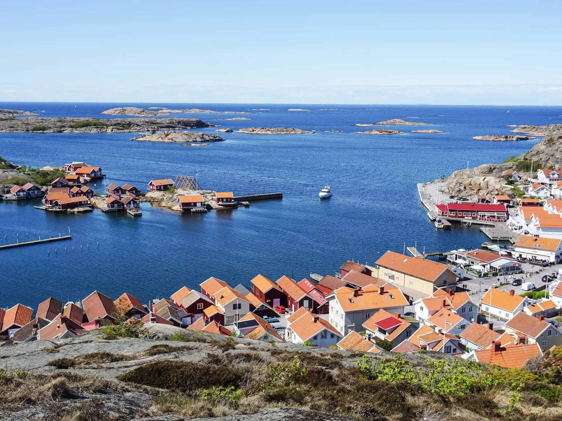 Hunnebostrand selbst ist eine lebhafte und authentische Küstengemeinde, die für ihre Geschäfte, Restaurants, Fischerkultur, Hummer-Safaris, Kajakfahren, Bootfahren, Golf, Wandern und ihr pulsierendes Hafenleben bekannt ist. Die umliegende Halbinsel Sotenäset bietet wunderschöne Küstenwanderwege, Badestellen und charmante Schären-Dörfer. Beliebte Tagesausflüge sind Smögen mit seinem berühmten Pier, Kungshamn, der Leuchtturm von Hållö, der Wildpark Nordens Ark und das Schwimm- und Wellnesscenter Tumlaren in Väjern.