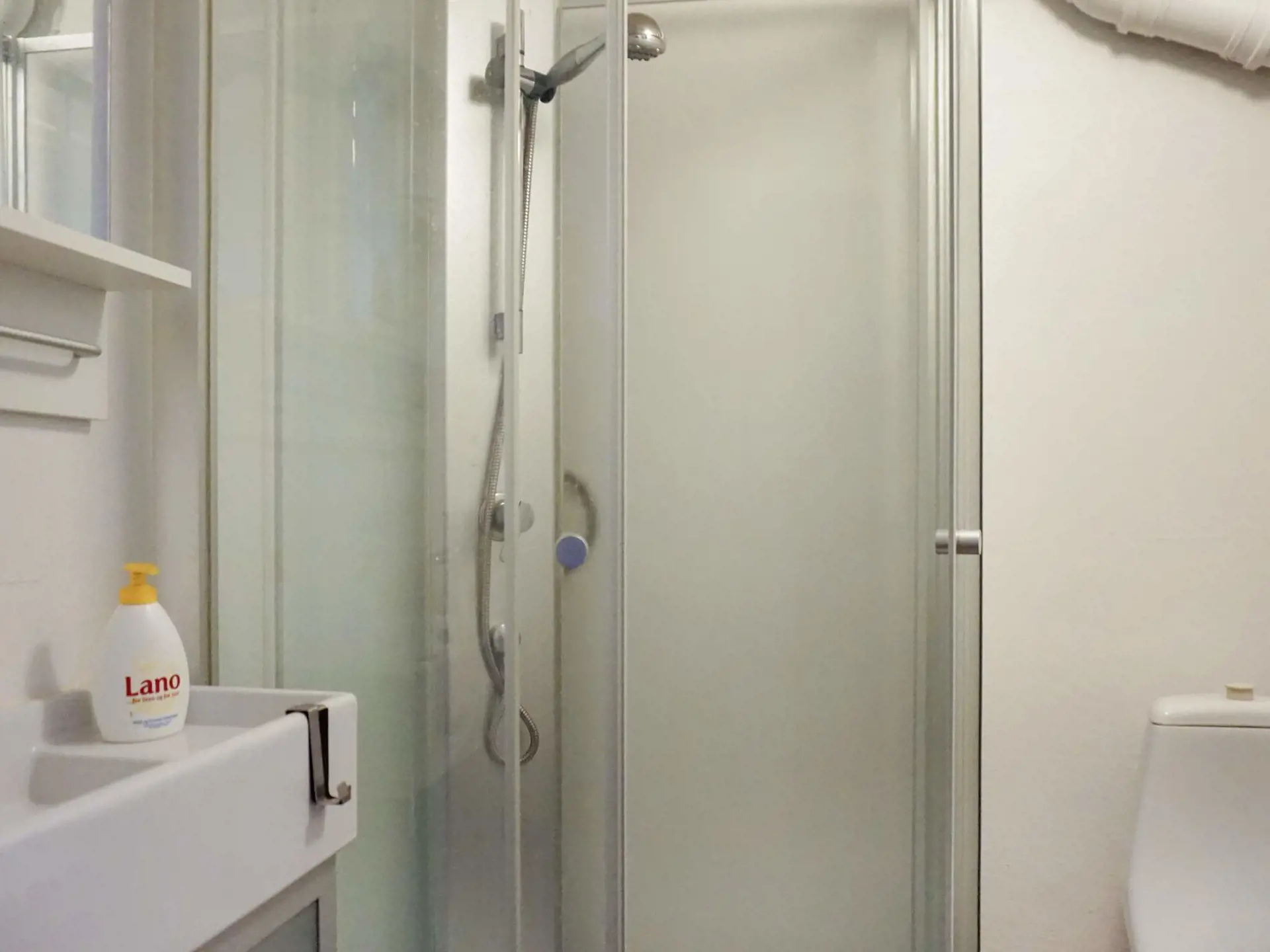 Die ebenerdige Ferienwohnung befindet sich auf einer Ebene und hat zwei dazugehörige Altane; eine mit Morgensonne für das Frühstück, der andere mit Nachmittags-/Abendsonne. Vom Eingang auf diesem Altan betreten Sie durch die Diele den hellen, offenen Küchen-/Essbereich und etwas niedrigerer Deckenhöhe von ca. 2 m, die das gemütliche Ambiente verstärkt. In der kleinen Küchenzeile gibt es einen Herd, eine Mikrowelle, einen Kühl-/Gefrierschrank und eine Kaffeemaschine. Im Wohnzimmer stehen ein bequemes Sofa und auch zwei Einzelbetten bereit. Im Schlafzimmer steht ein 140 cm breites Doppelbett und das Badezimmer ist mit einer Dusche ausgestattet. In der Küche gibt es sowohl eine Waschmaschine als auch einen Wäschetrockner. Die Wohnung verfügt über WLAN-Verbindung.