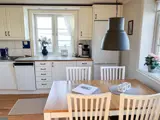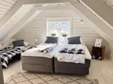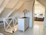 Im Wohnzimmer befinden sich ein Schlafsofa (160 cm), ein Fernseher mit Apple TV, ein Schreibtisch und zwei bequeme Sessel. Die Küche ist komplett ausgestattet mit Geschirrspüler, Kühl-/Gefrierschrank, Mikrowelle und Kaffeemaschine. Ein Küchentisch mit Stühlen ist ebenfalls vorhanden. Das Badezimmer verfügt über WC, Waschbecken, Dusche und Waschmaschine. Fußbodenheizung ist sowohl im Flur als auch in der Küche und im Bad vorhanden. Eine leicht steile Treppe führt zum Dachboden, wo sich zwei Einzelbetten (90 cm) befinden. Der Dachboden verfügt außerdem über ein Schlafzimmer mit einem Doppelbett (90 cm + 90 cm). Bei Bedarf steht ein Klappbett zur Verfügung.